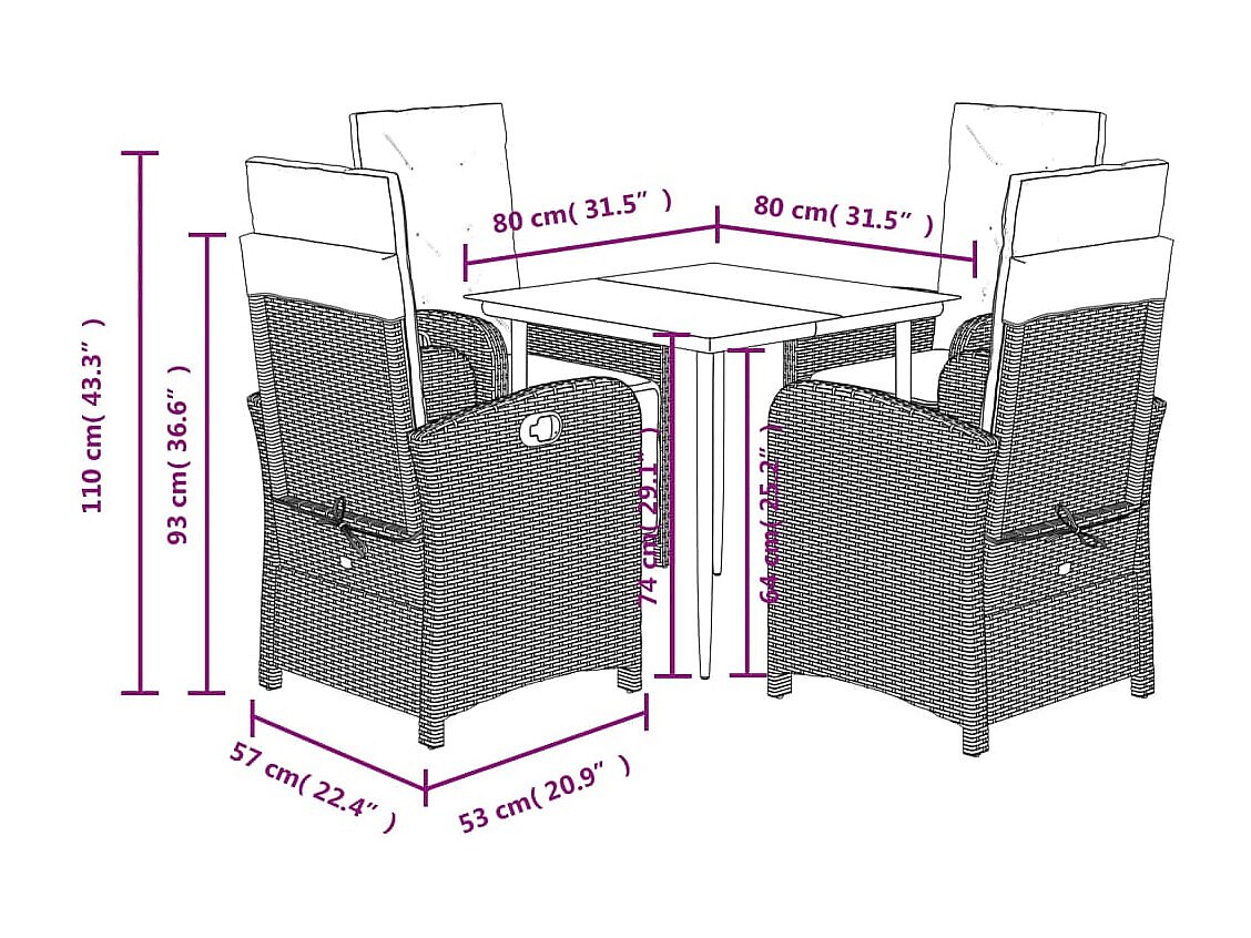 Modica Ensemble à manger de jardin 5 pcs coussins gris résine tressée