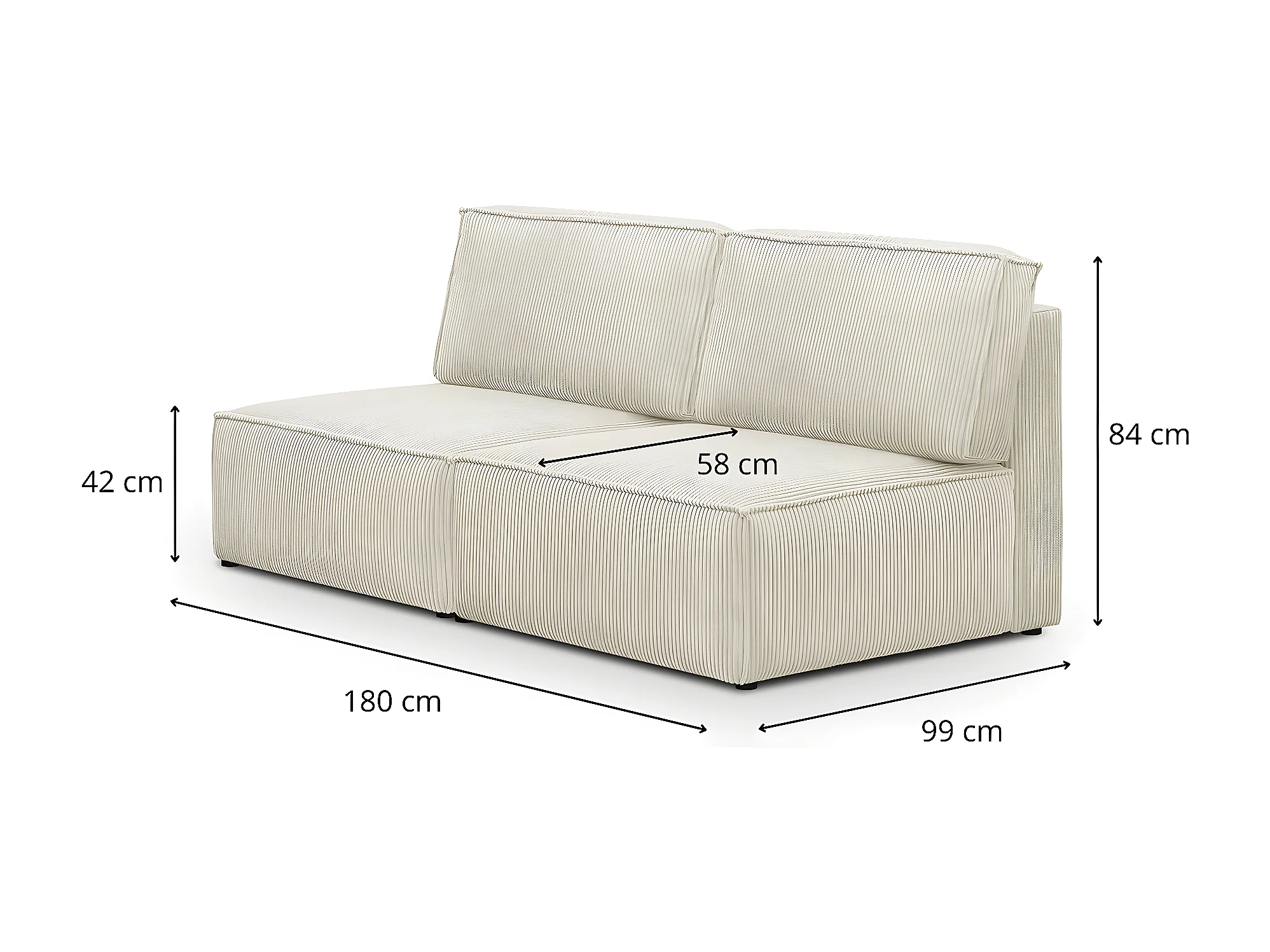 Module canapé 2 places en velours côtelé beige - Harper Mod