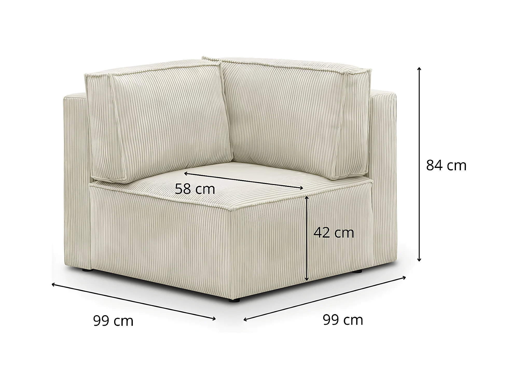 Module d'angle à gauche en velours côtelé beige - Harper Mod