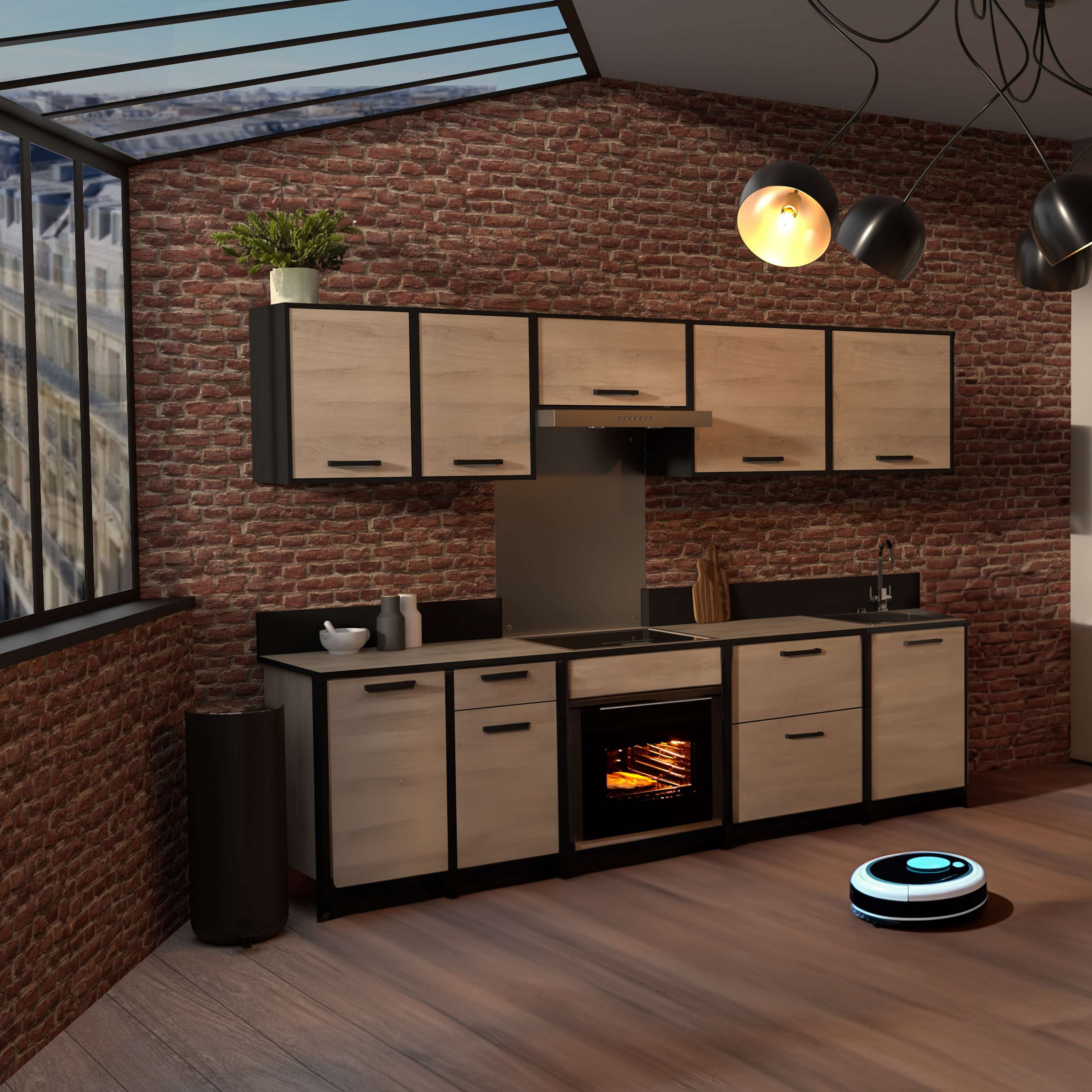 Module inférieur de cuisine industrielle Etilo, chêne/noir, 1 porte 44 cm