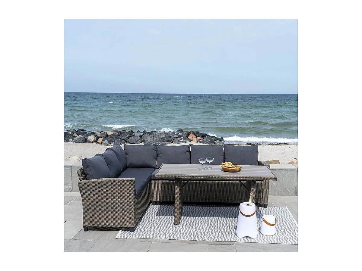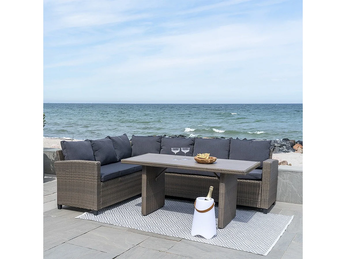 MOG - Salon de Jardin Réversible Effet Rotin Gris avec Table