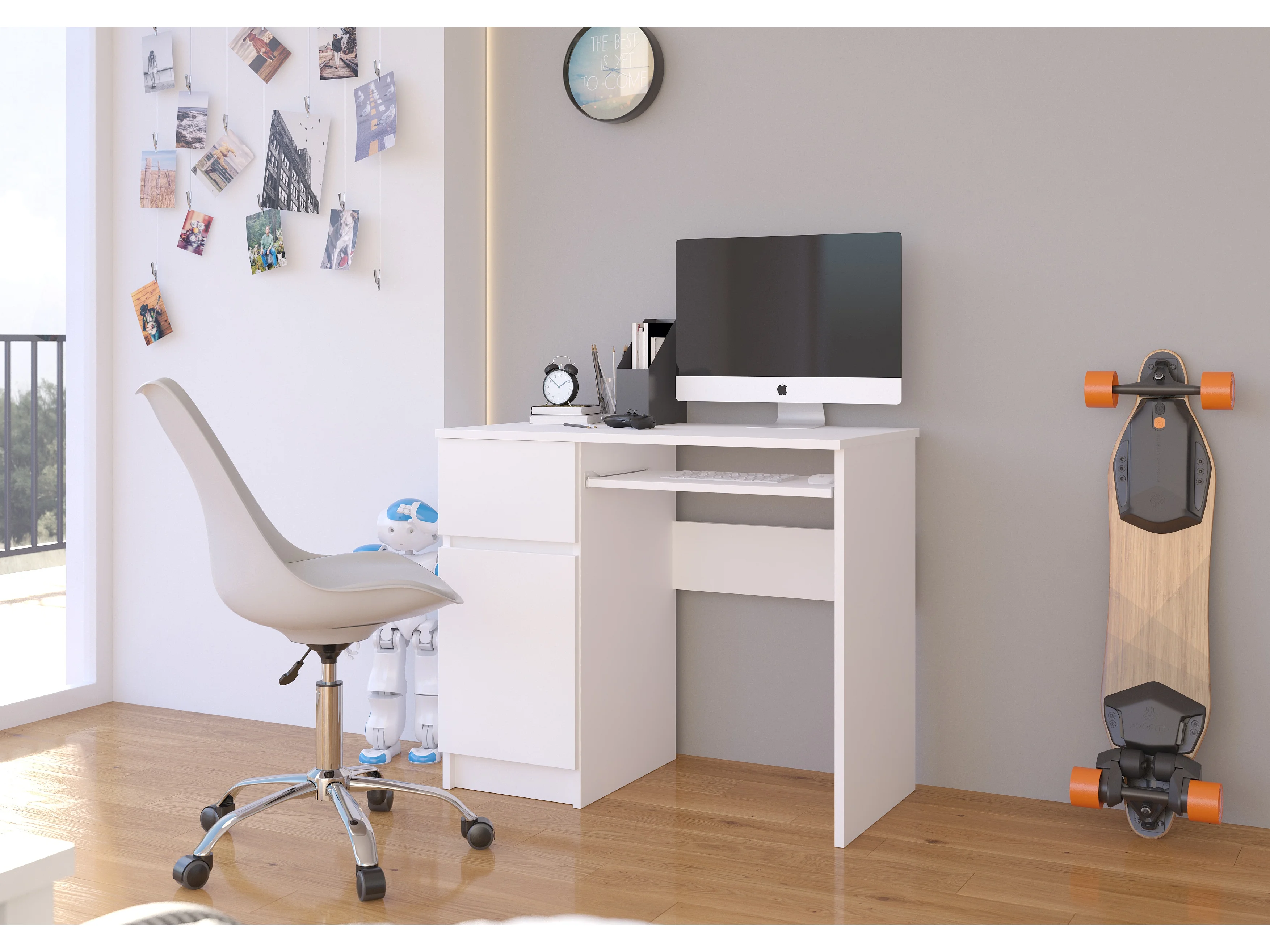 MOGO | Bureau informatique contemporain 90x77x50 cm | Taille compacte + support clavier + tiroir | Table ordinateur moderne