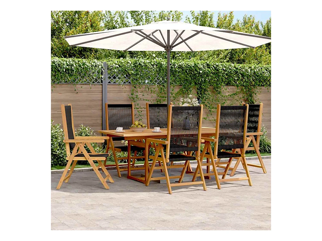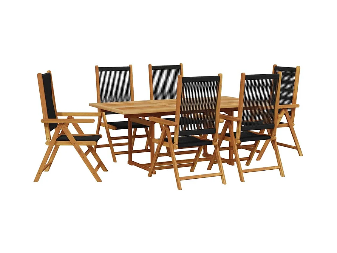 Molfetta Ensemble à Manger de jardin 7pcs noir polypropylène bois massif