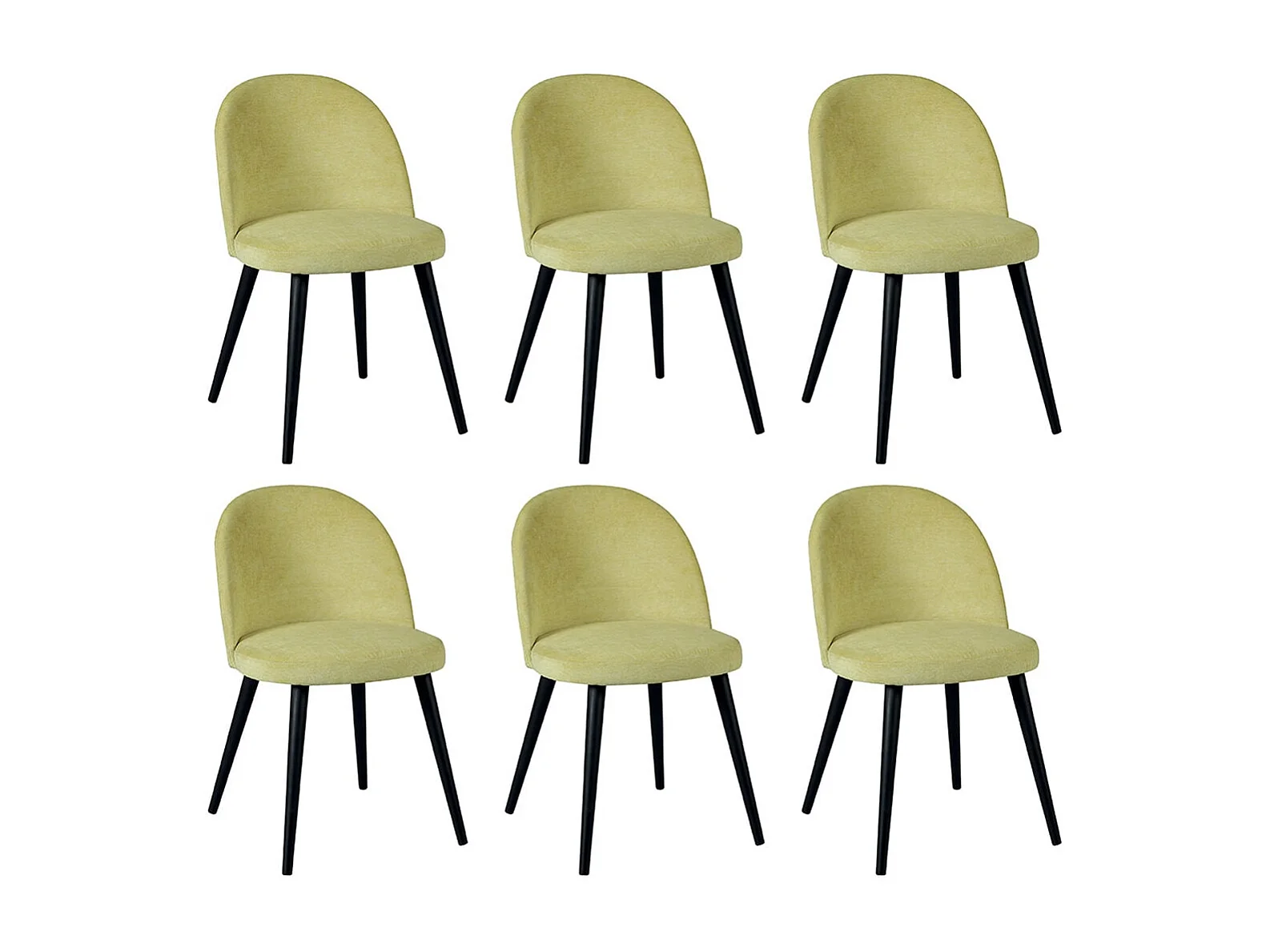 MOLLY - Lot de 6 Chaises Tissu Jaune Piètement Bois Massif