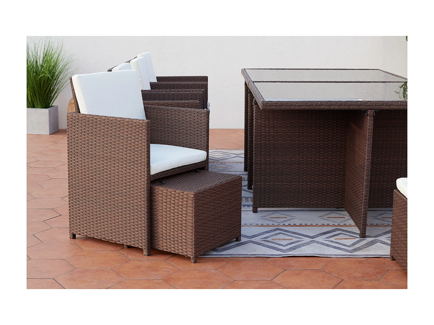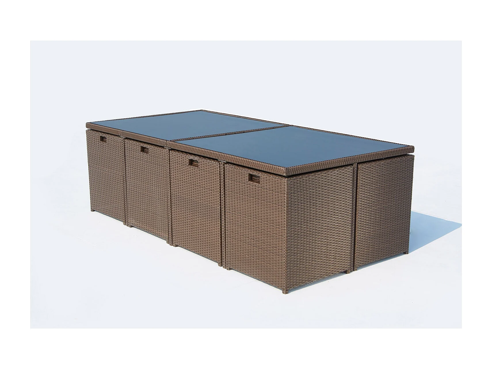 Table et chaises 12 places encastrables résine marron-blanc MONACO