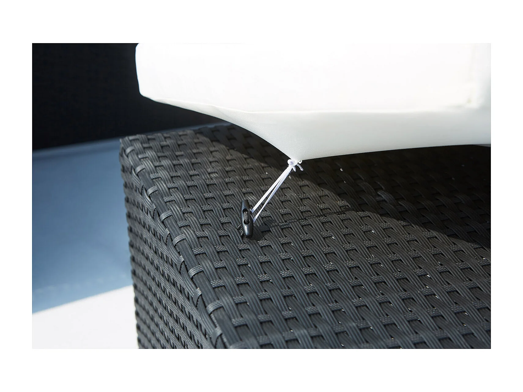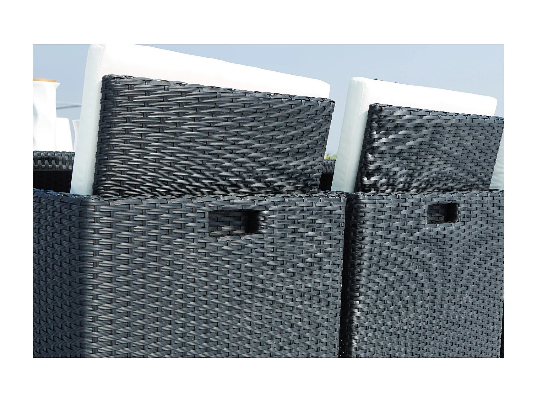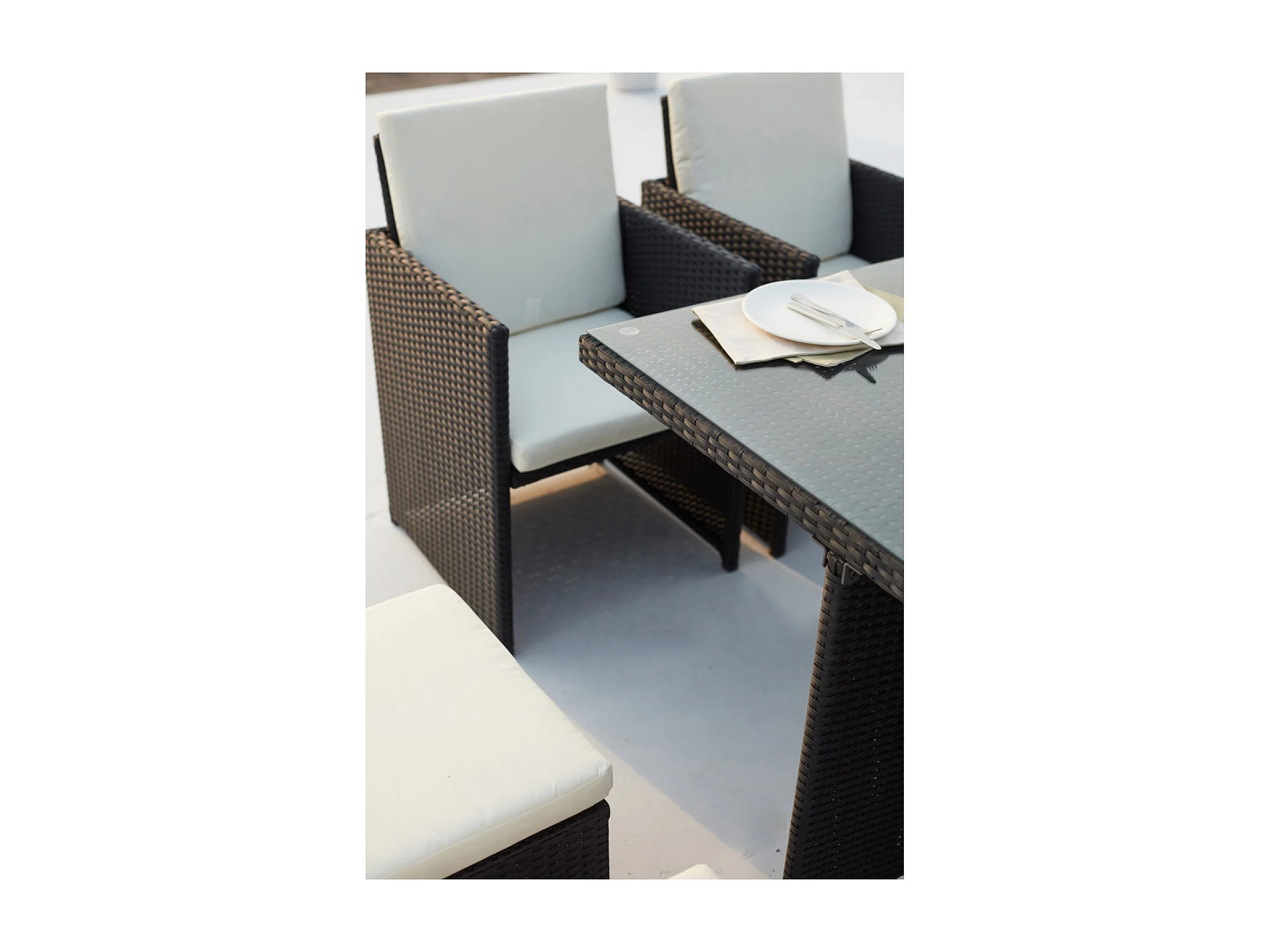 Table et chaises 8 places encastrables en résine noir-blanc MONACO