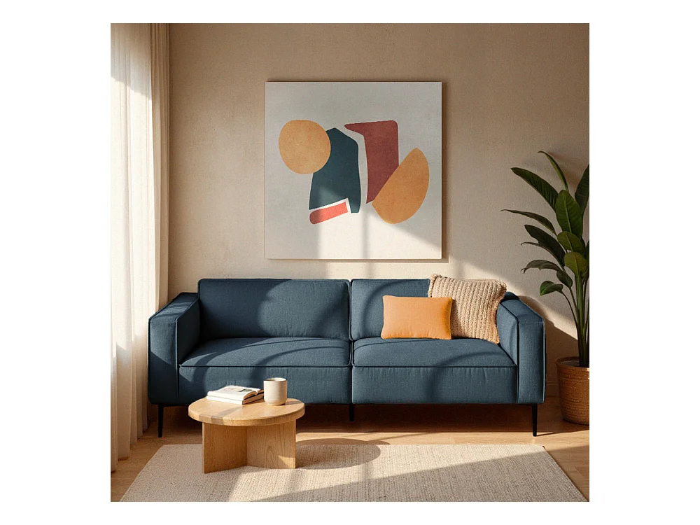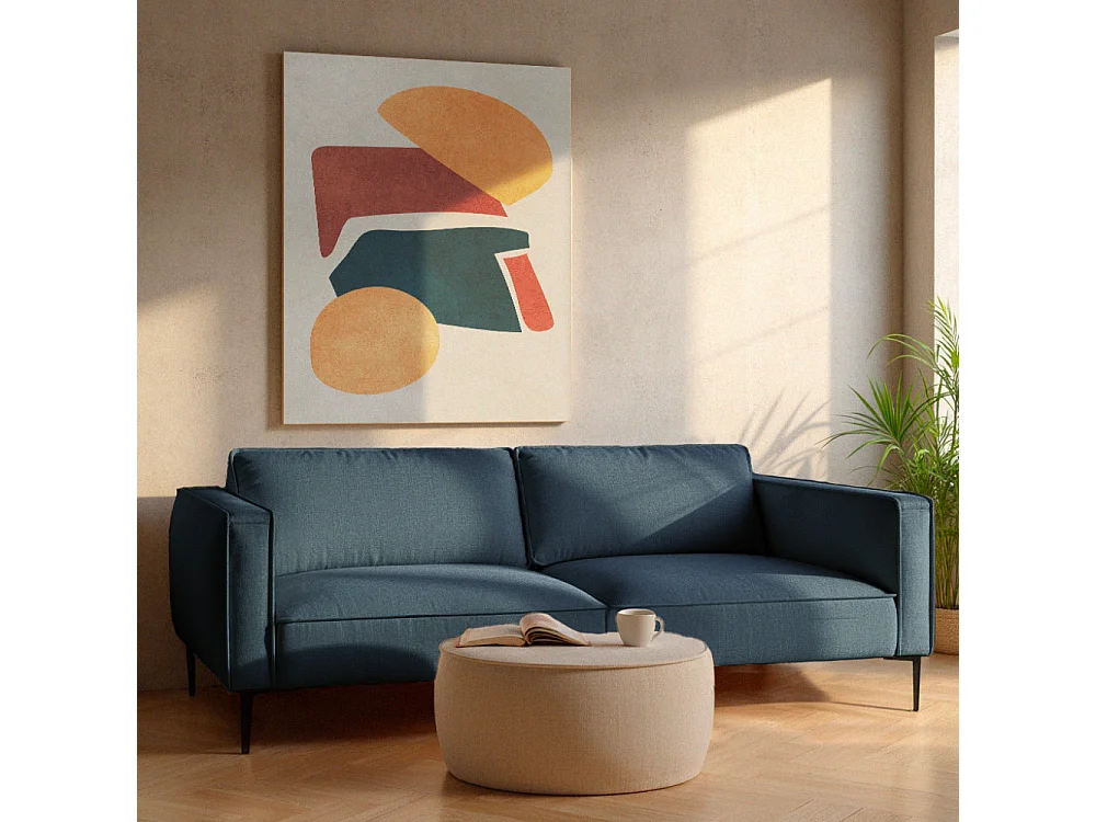 Montebello - Canapé droit 3 places en tissu et pieds en métal - Bleu foncé
