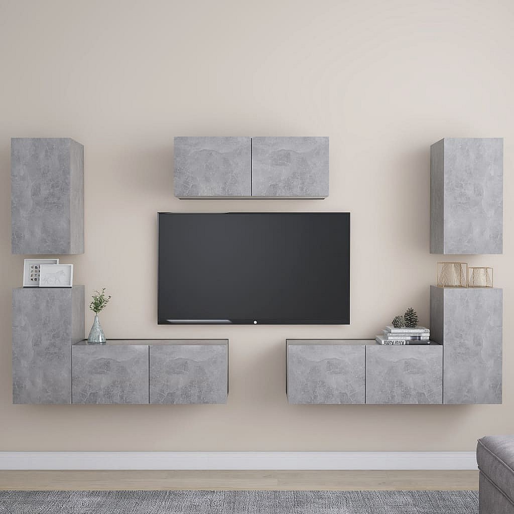 Monza Ensemble de meubles TV 7 pcs Gris béton Bois d'ingénierie