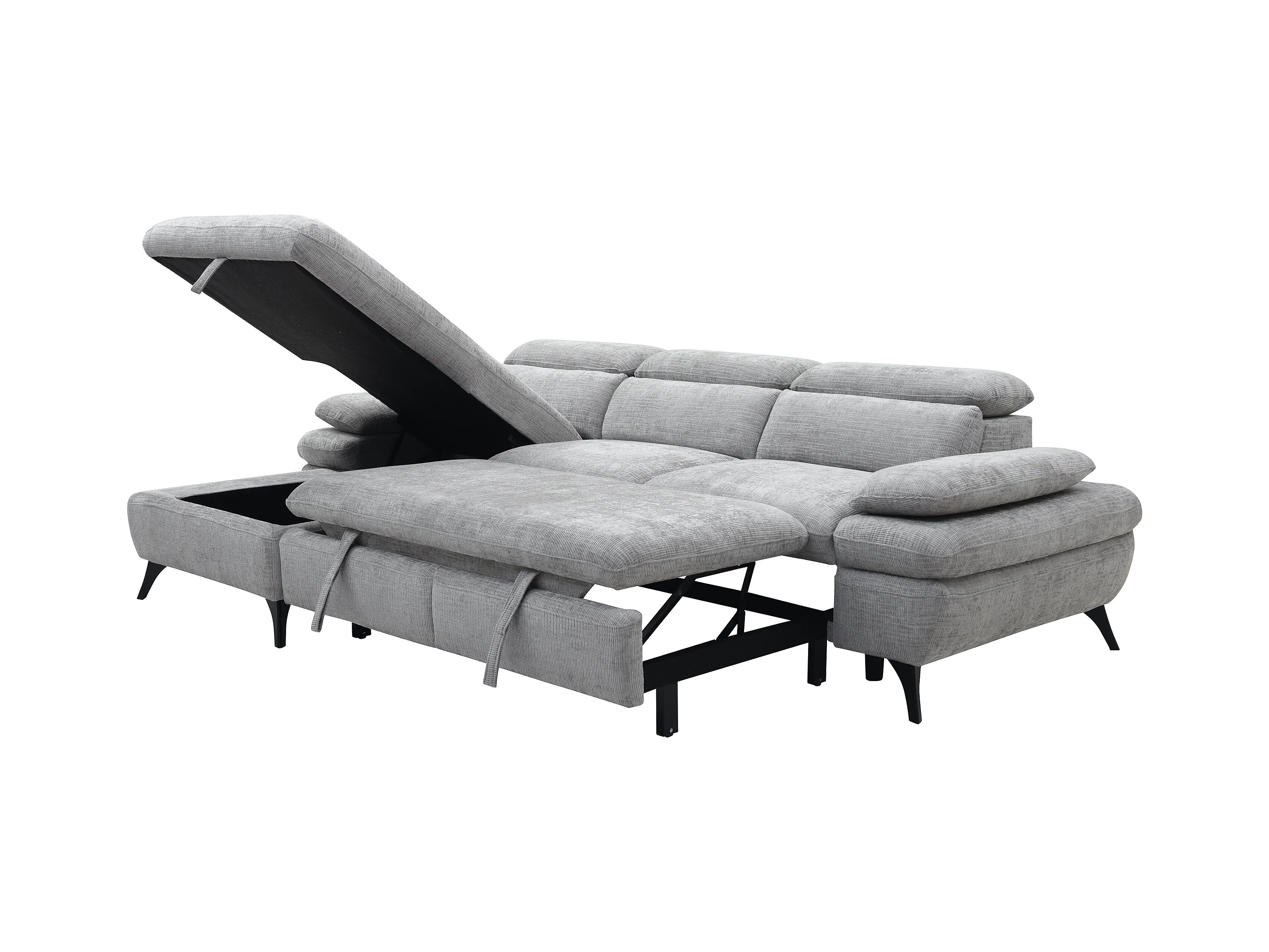 Canapé d'angle gauche convertible en tissu texturé gris SURDELI