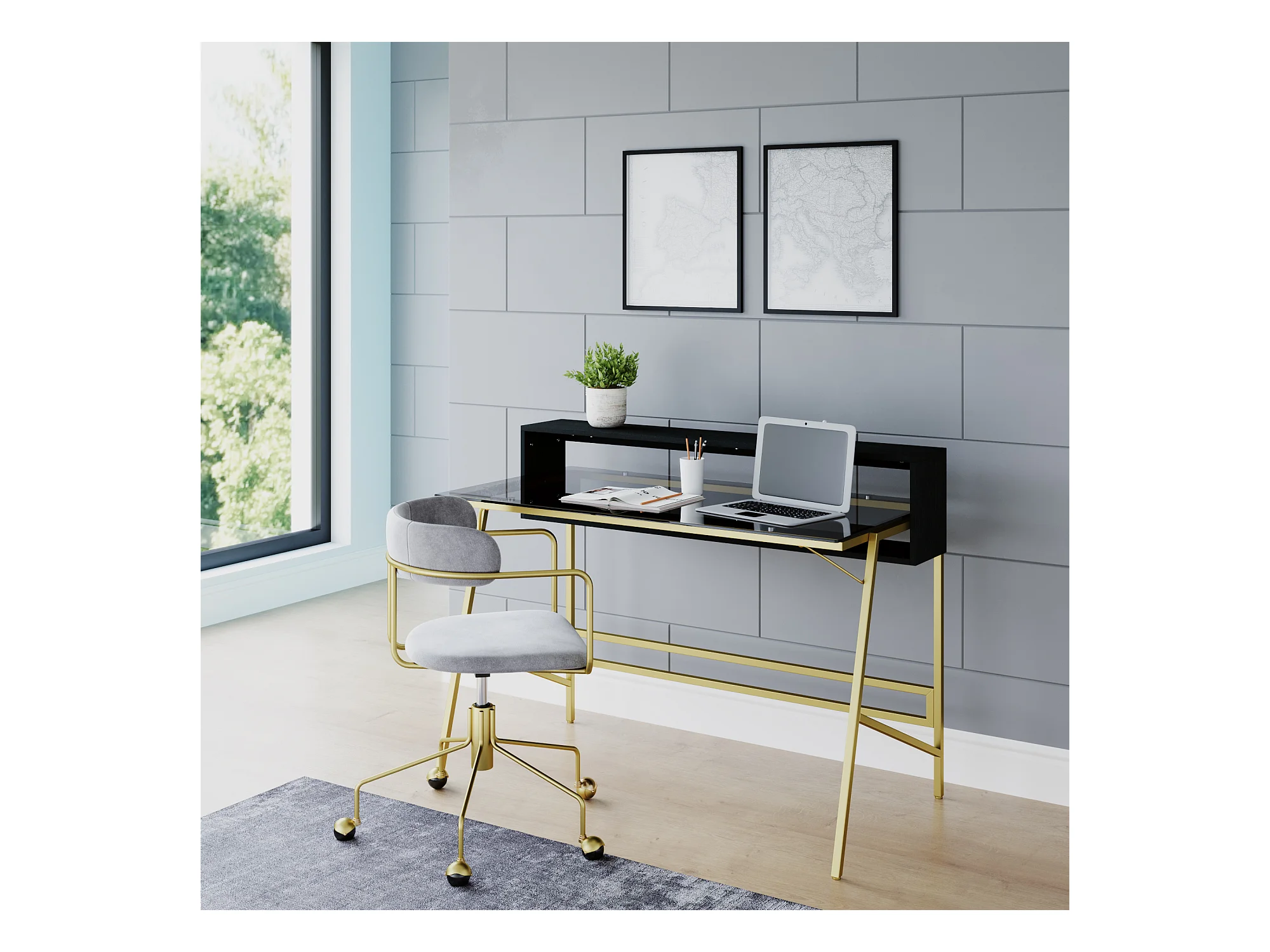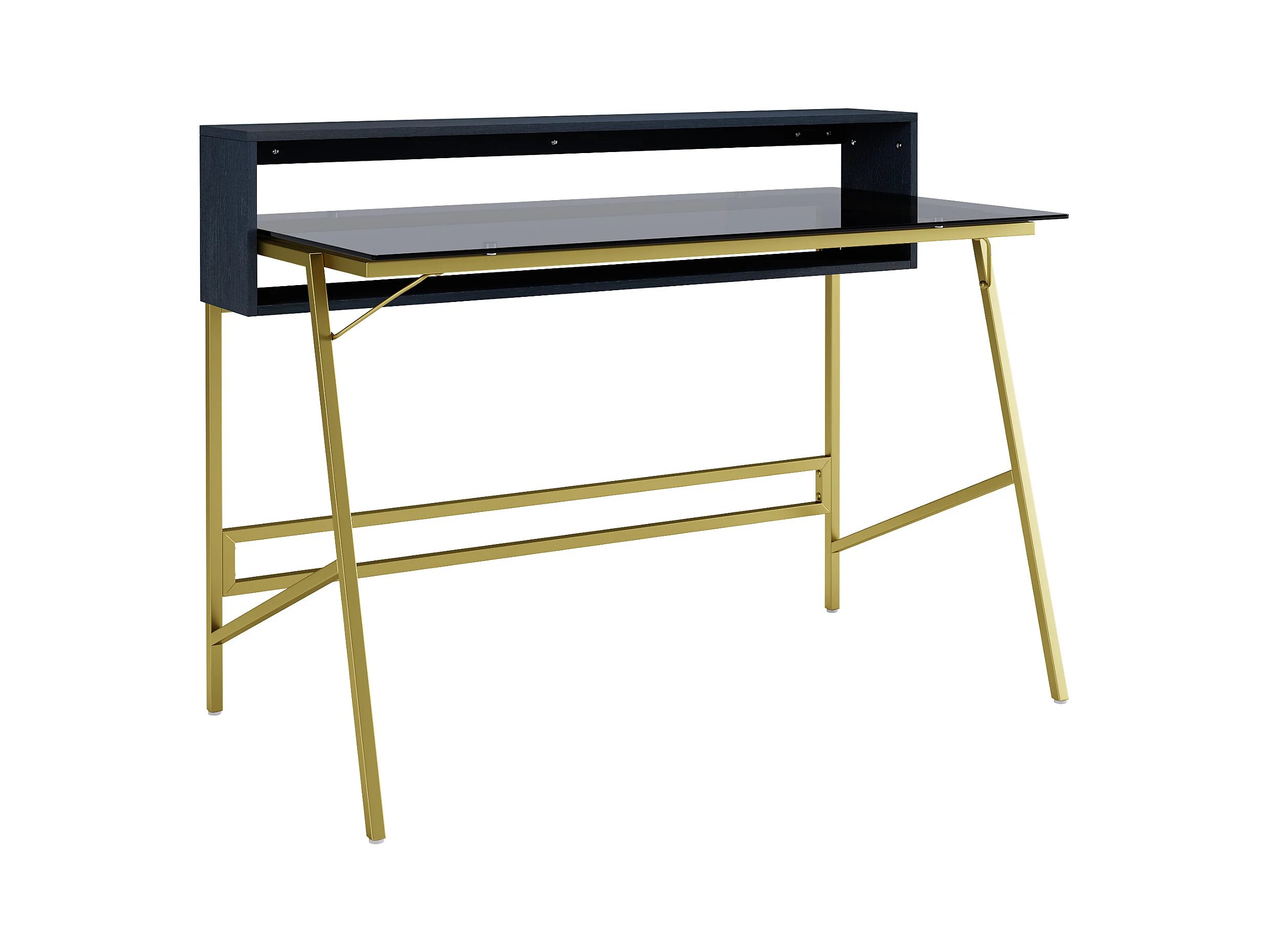 Morgan | Bureau avec plateau en verre et cadre en métal doré