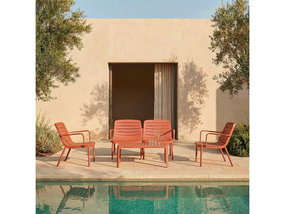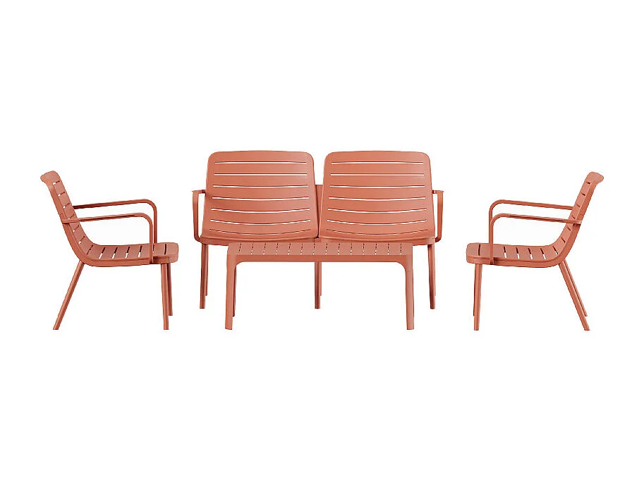 Moro - Salon de jardin 4 places en résine - Terracotta
