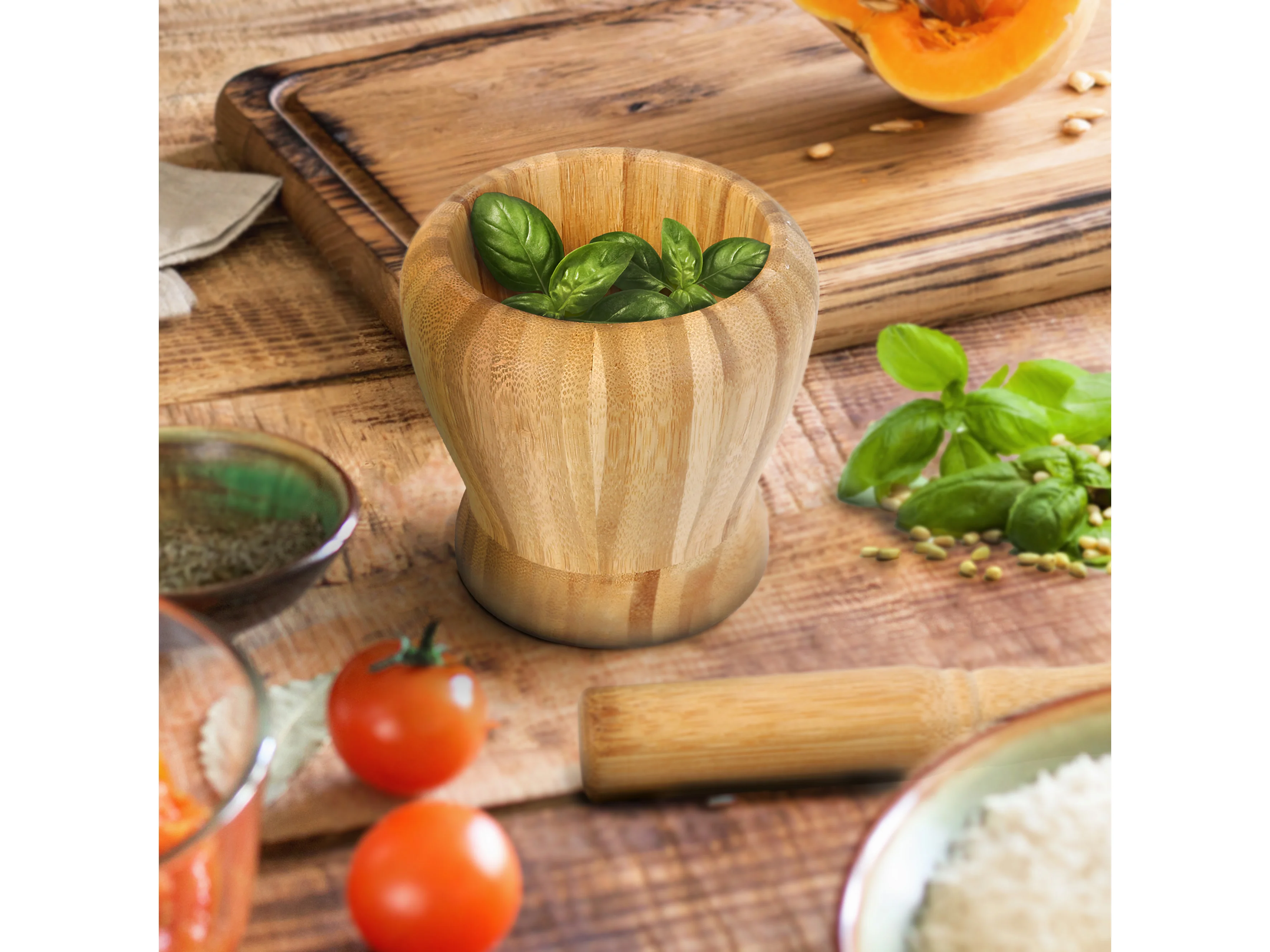 Lot de 4 Ustensiles & Pot de Cuisine "Bambou" Naturel