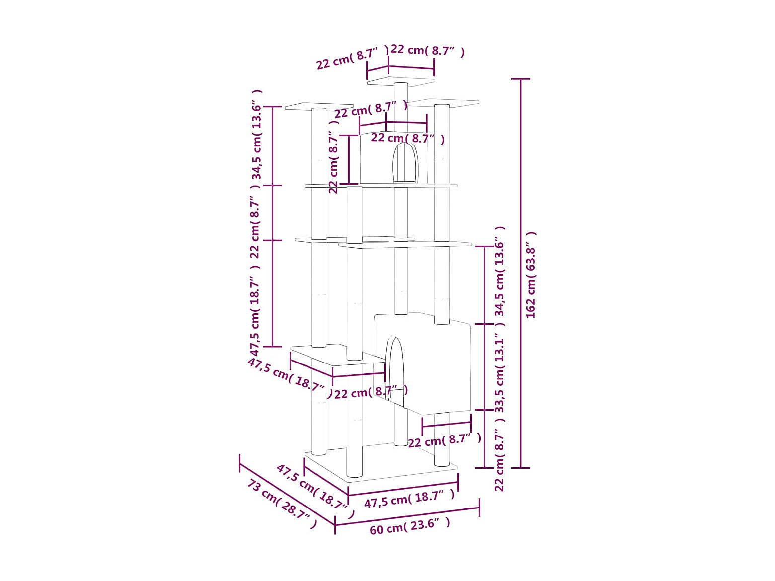 Moss Arbre à chat avec griffoirs en sisal Gris foncé 162 cm