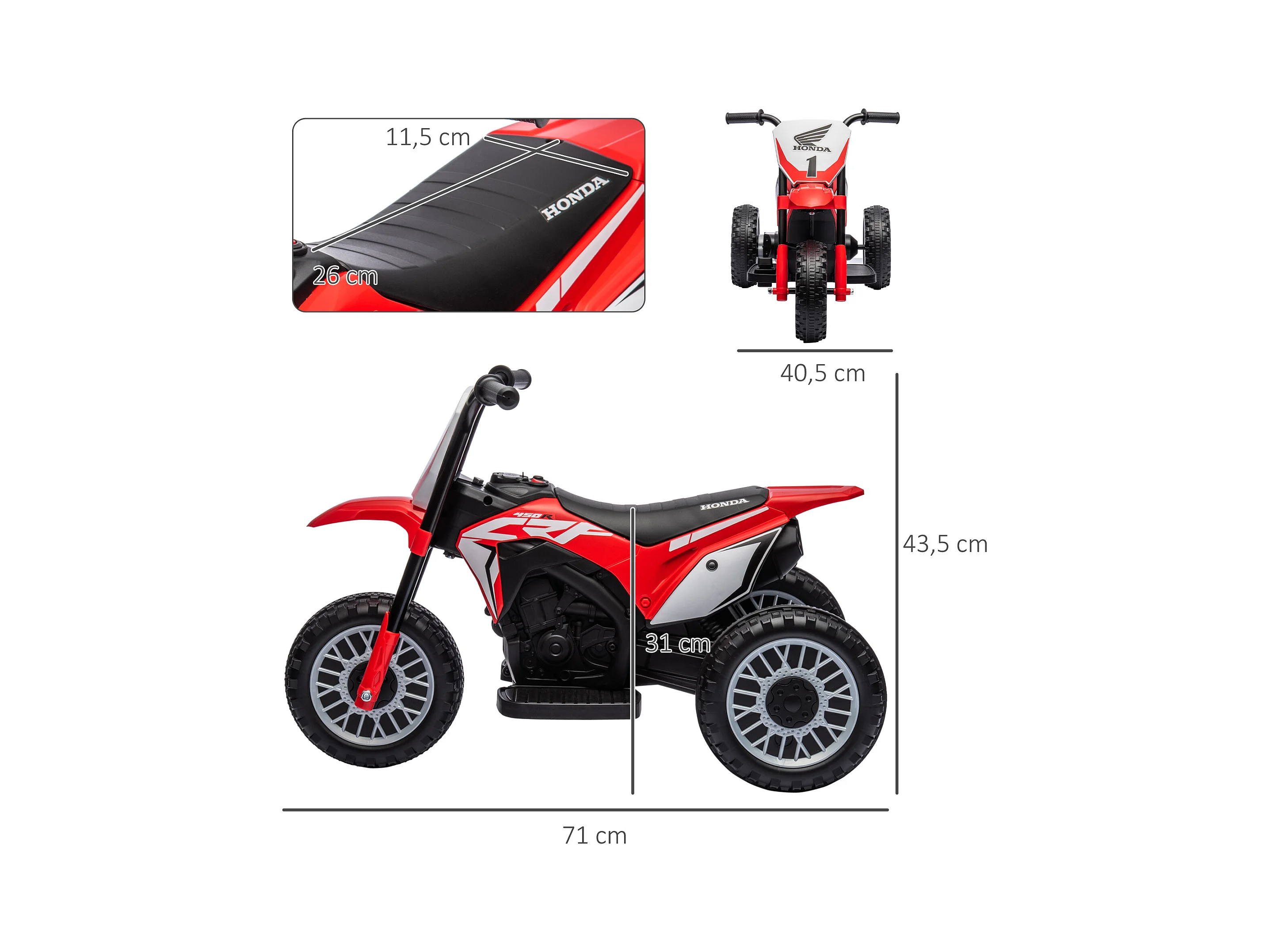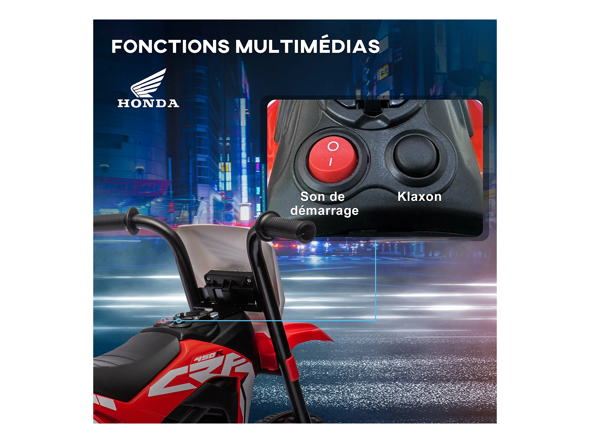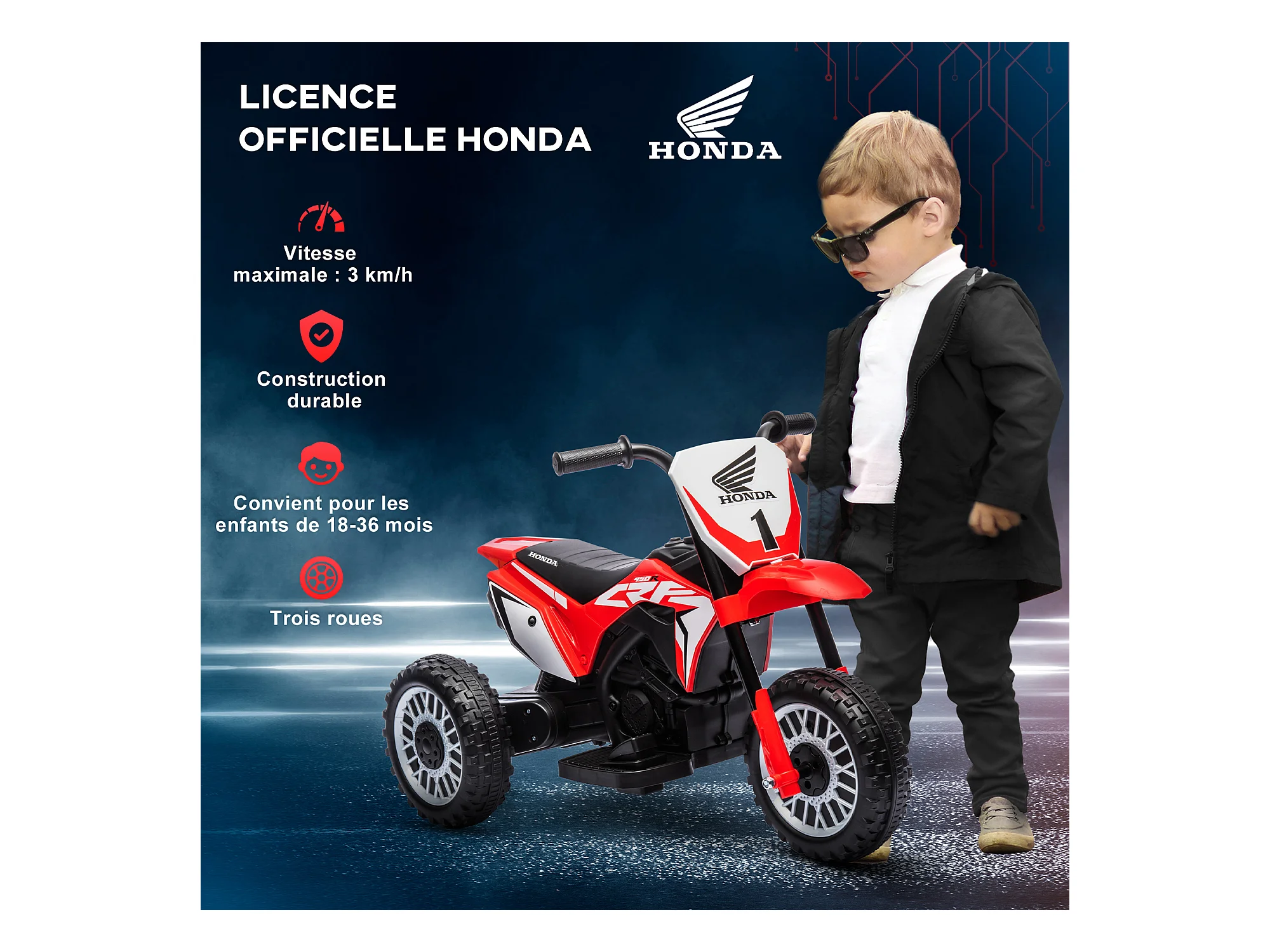 Moto Cross électrique enfant 3 roues licence officielle Honda CRF 450 R V. max. 3 Km/h fonctions sonores rouge