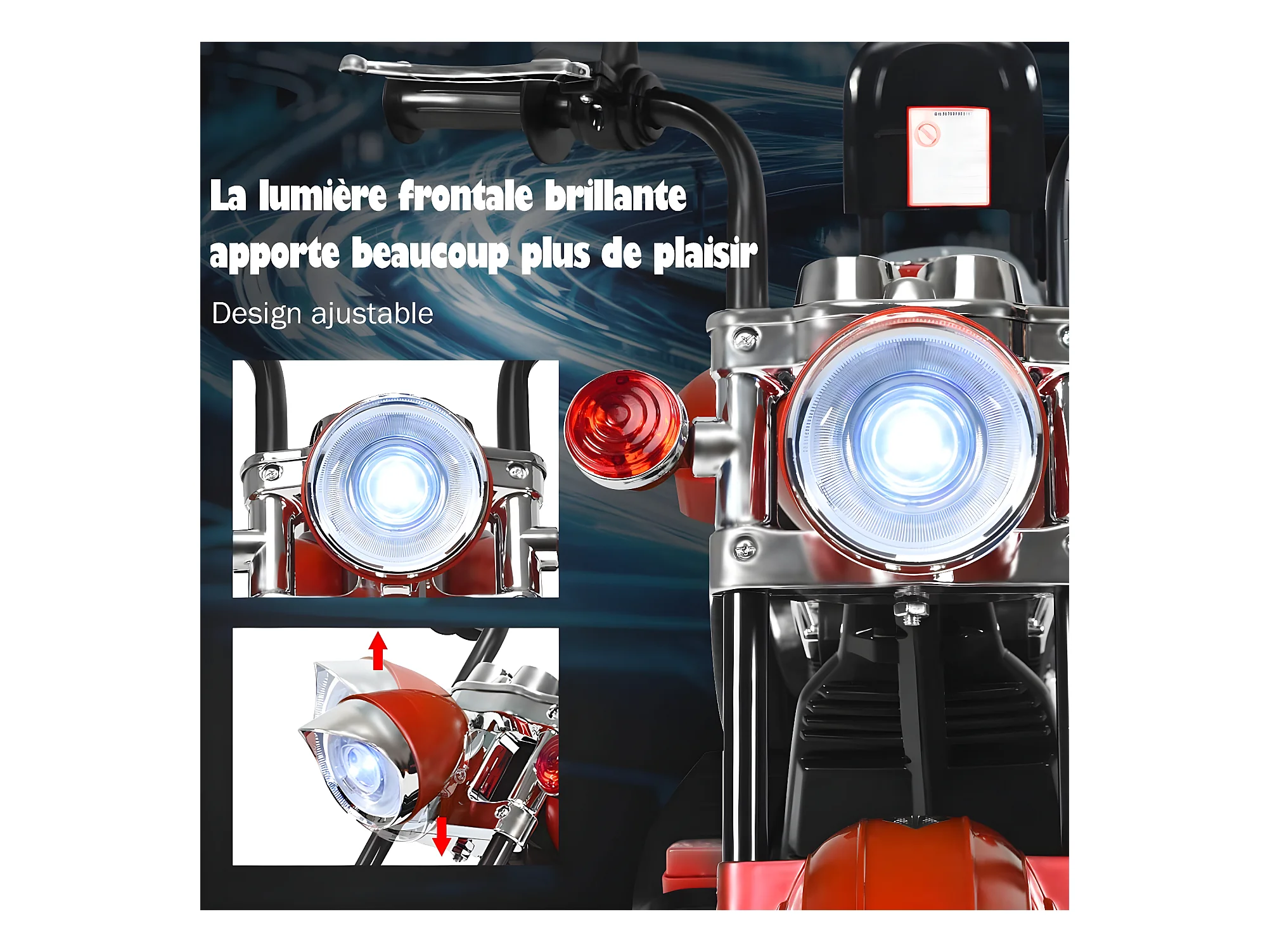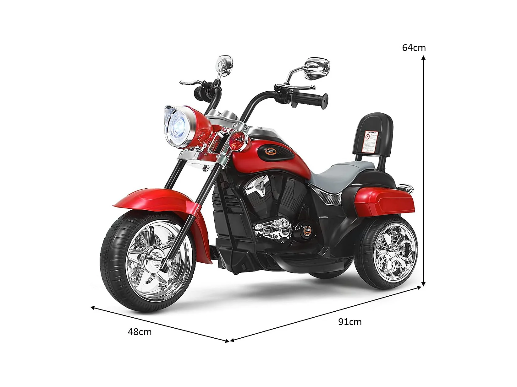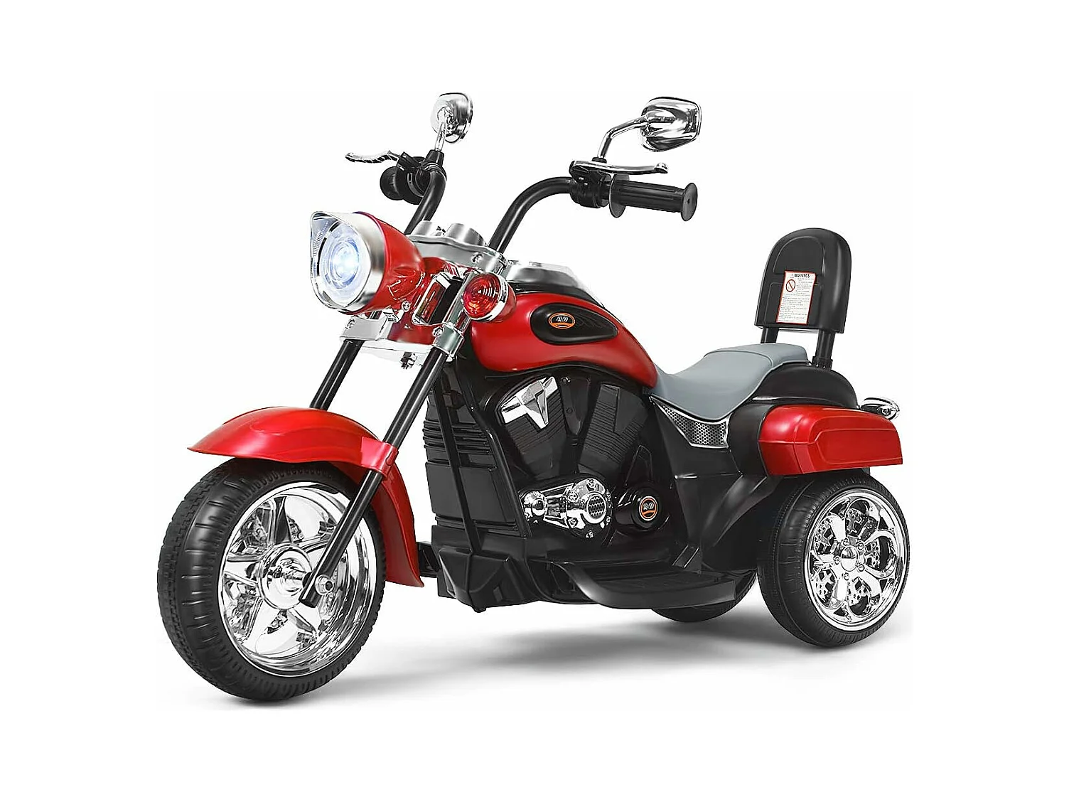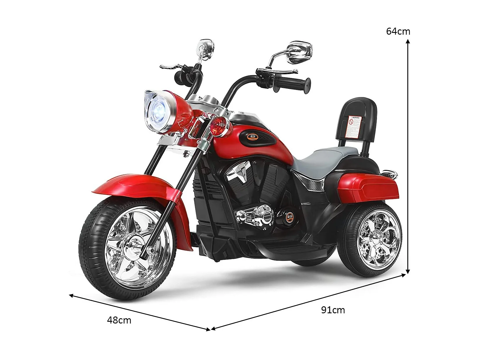 Moto électrique enfant chopper tout-terrain 6 V 20 W marche AV AR 3 roues effets lumineux et sonores rouge noir