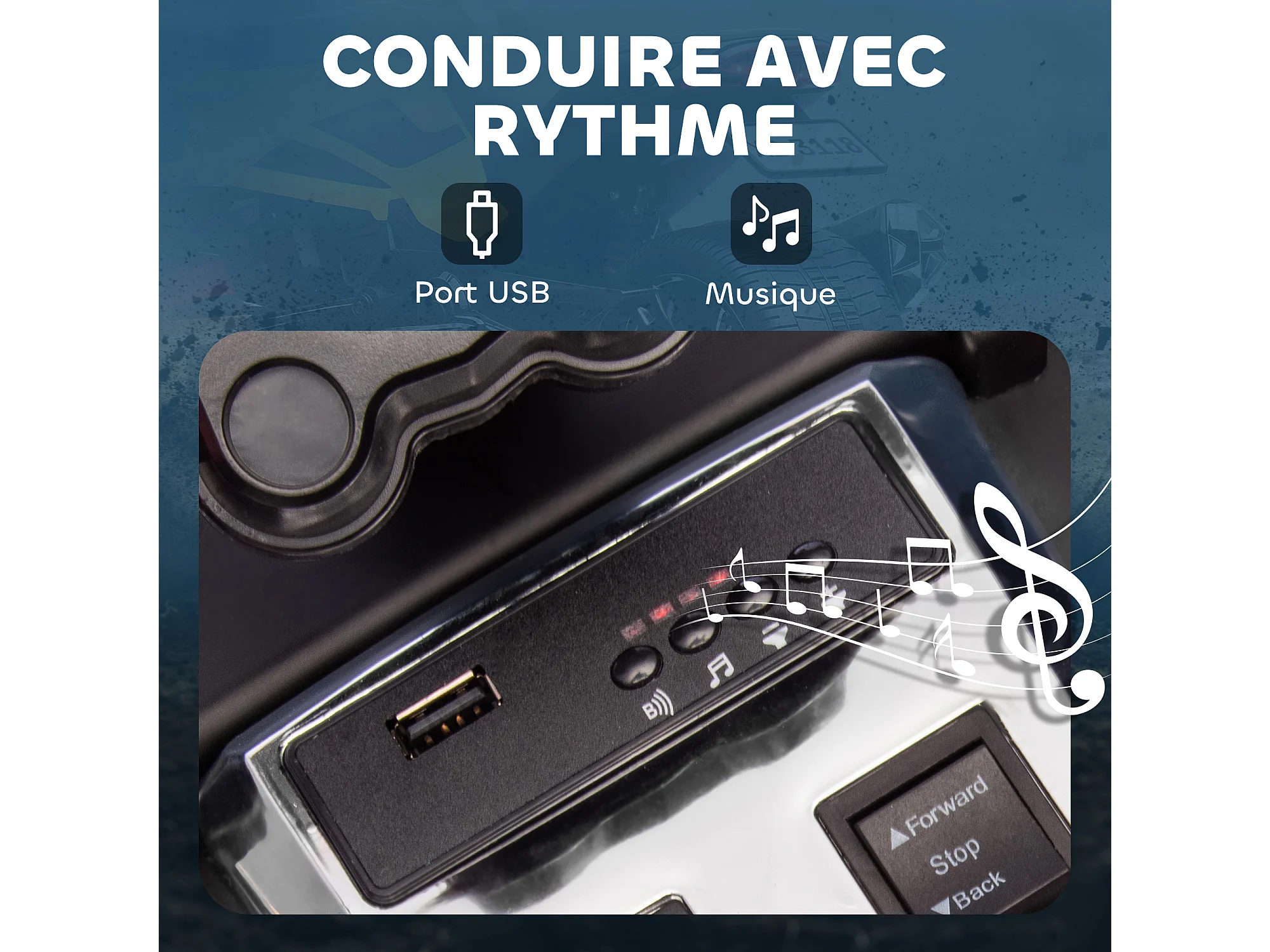 Moto électrique enfant trike side-car 12V 5Km/h max. effets sonores lumineux jaune