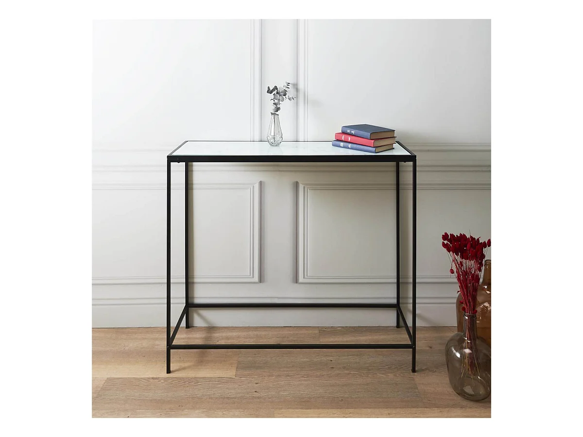 Table console plateau étagère dim. 100L x 30l x 87H cm acier panneaux blanc