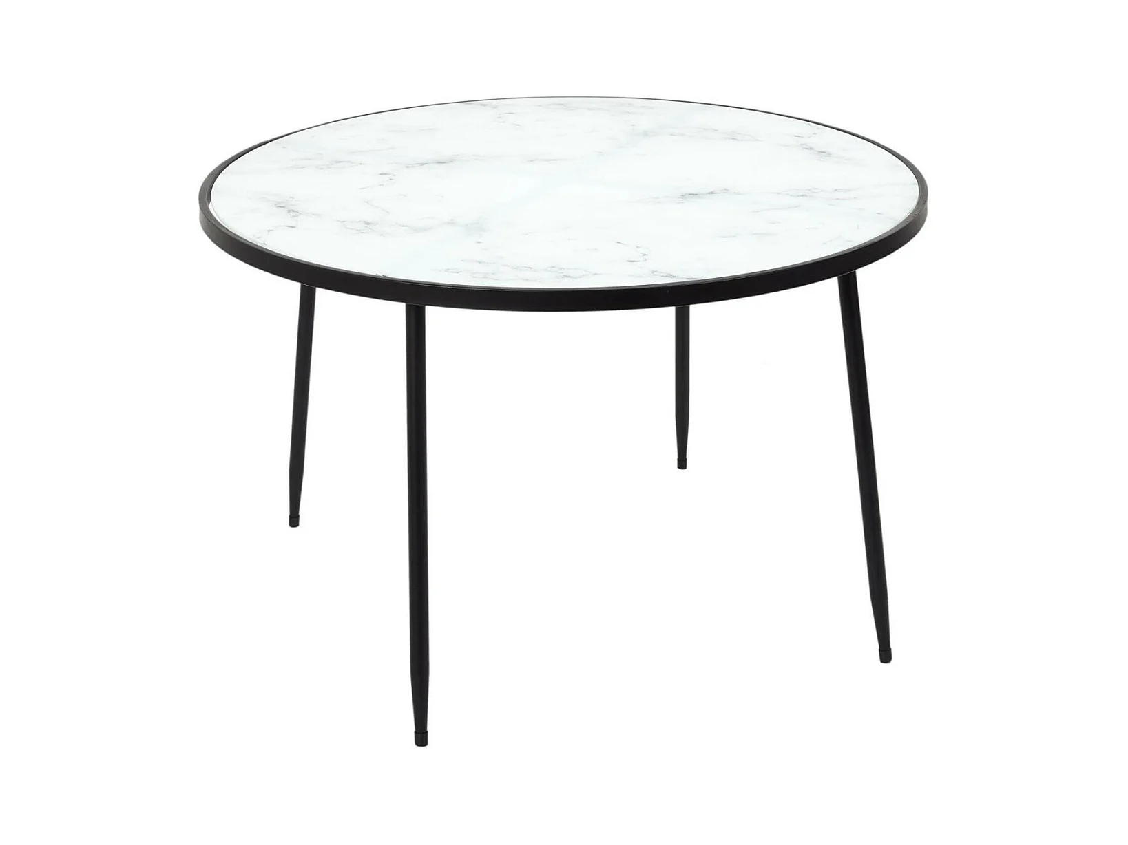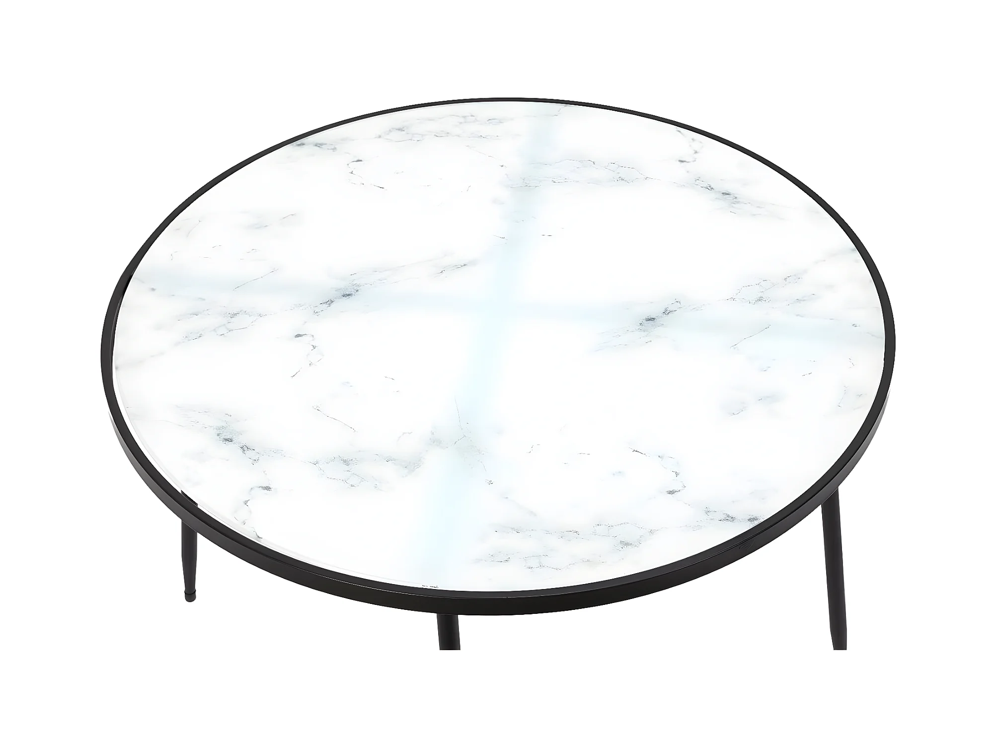 MOTSA - Table Basse Ø75cm Plateau Verre Imitation Marbre