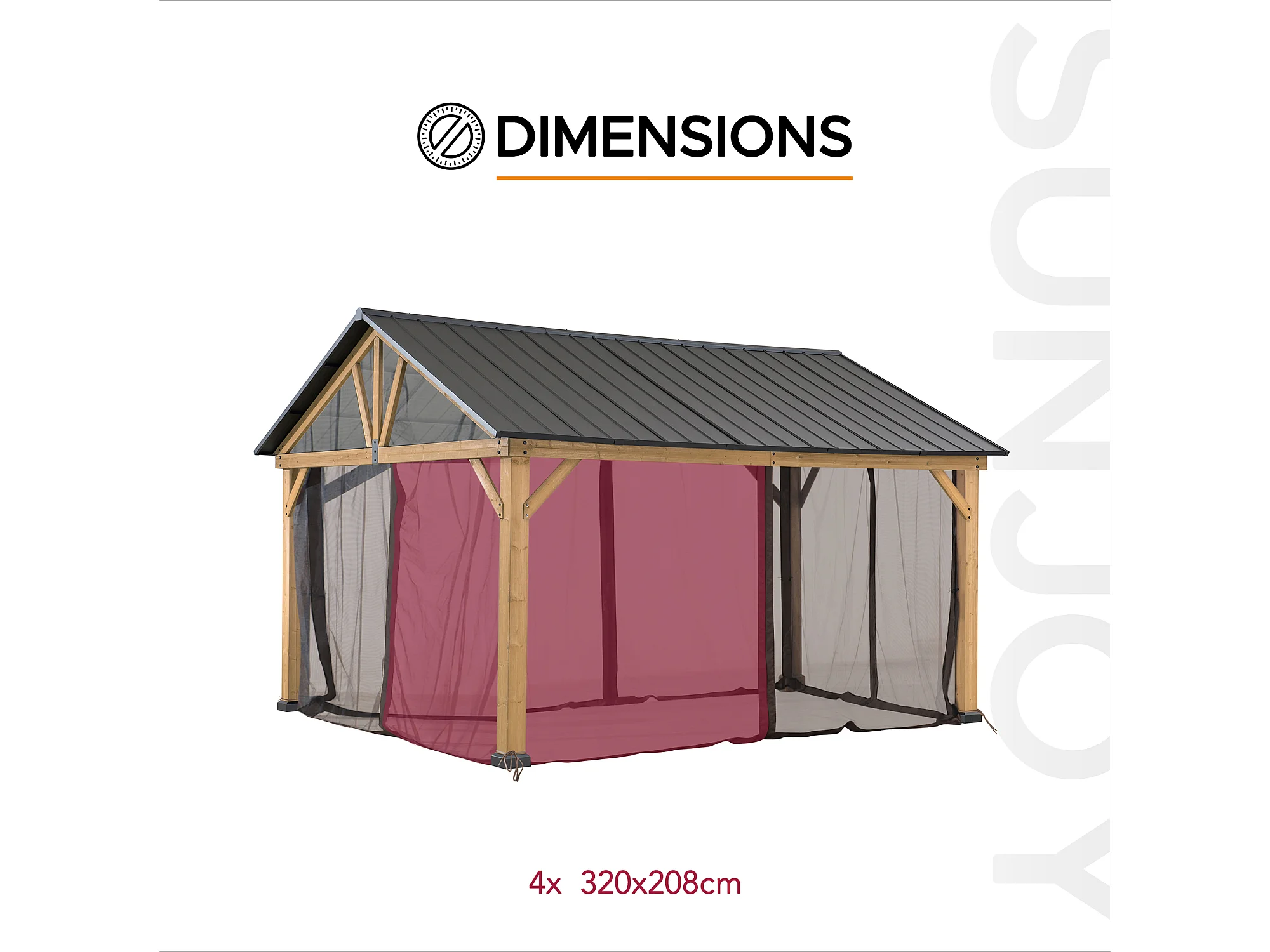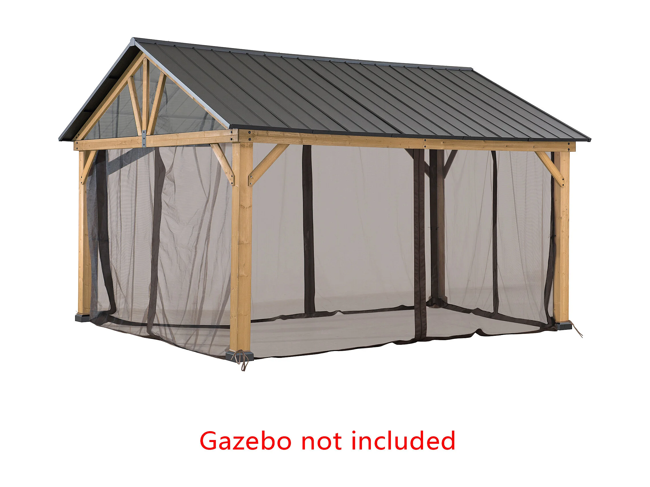 Moustiquaire de remplacement SUNJOY pour tonnelles à toit à deux pentes avec structure en bois de 335 cm x 399 cm (avec tube de fixation pour la moustiquaire)