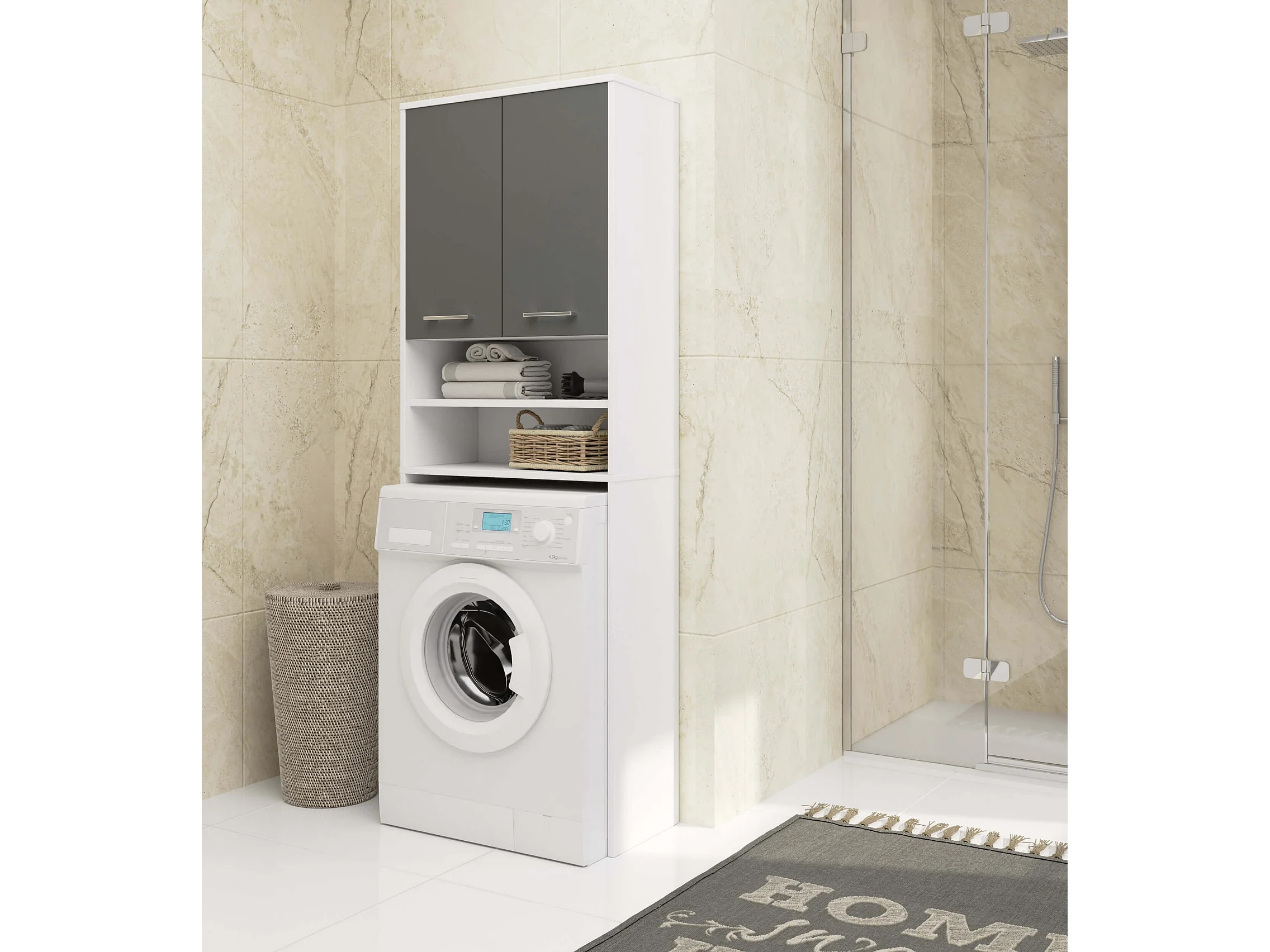 Meuble pour machine à laver FIN Blanche 64 cm 2 portes façade Gris Graphite niche 4 étagères 64x30x180 cm