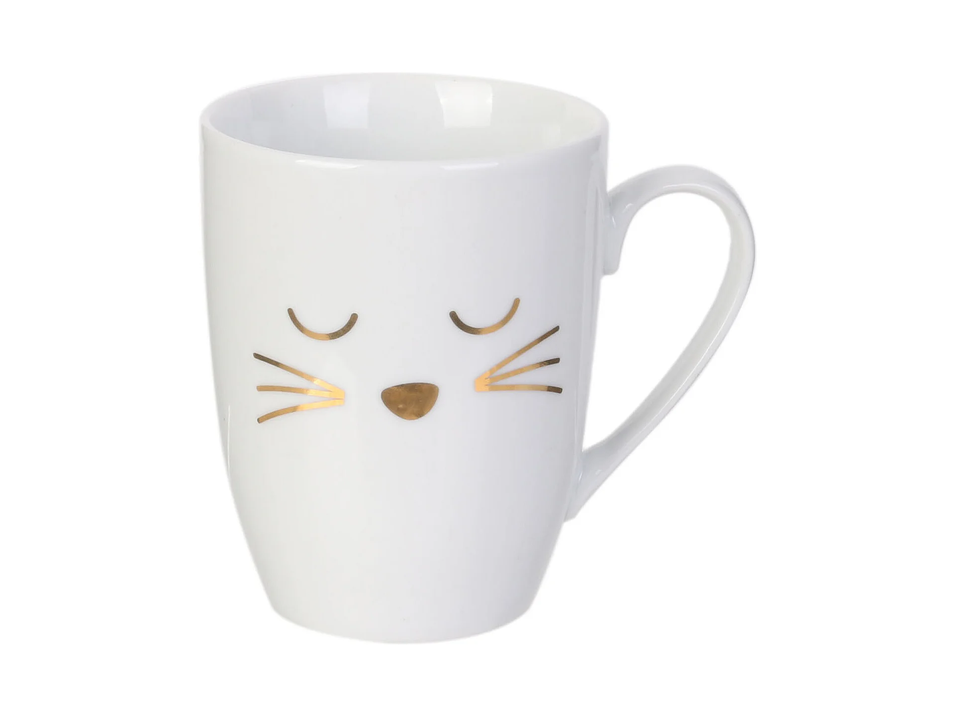 Mug Avec Cuillere Chat Kawaii Blanc, Or