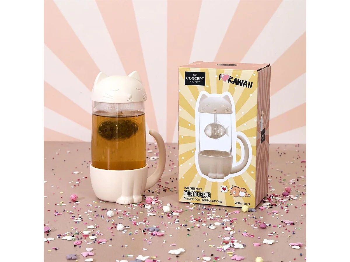 Mug kawaii chat avec infuseur en forme de poisson de 30 cl