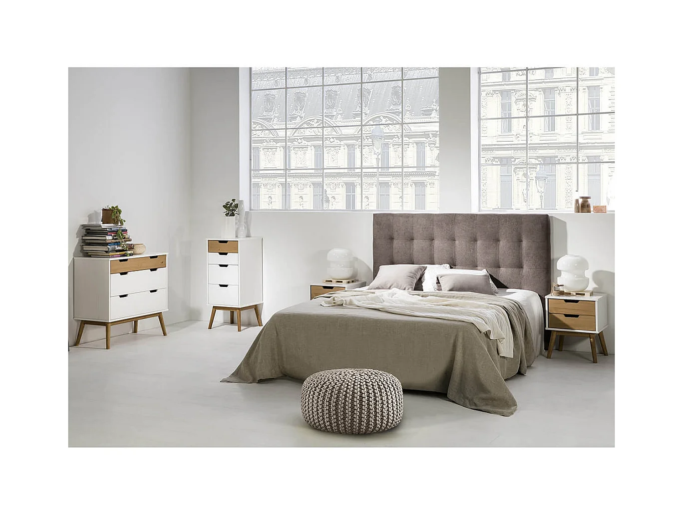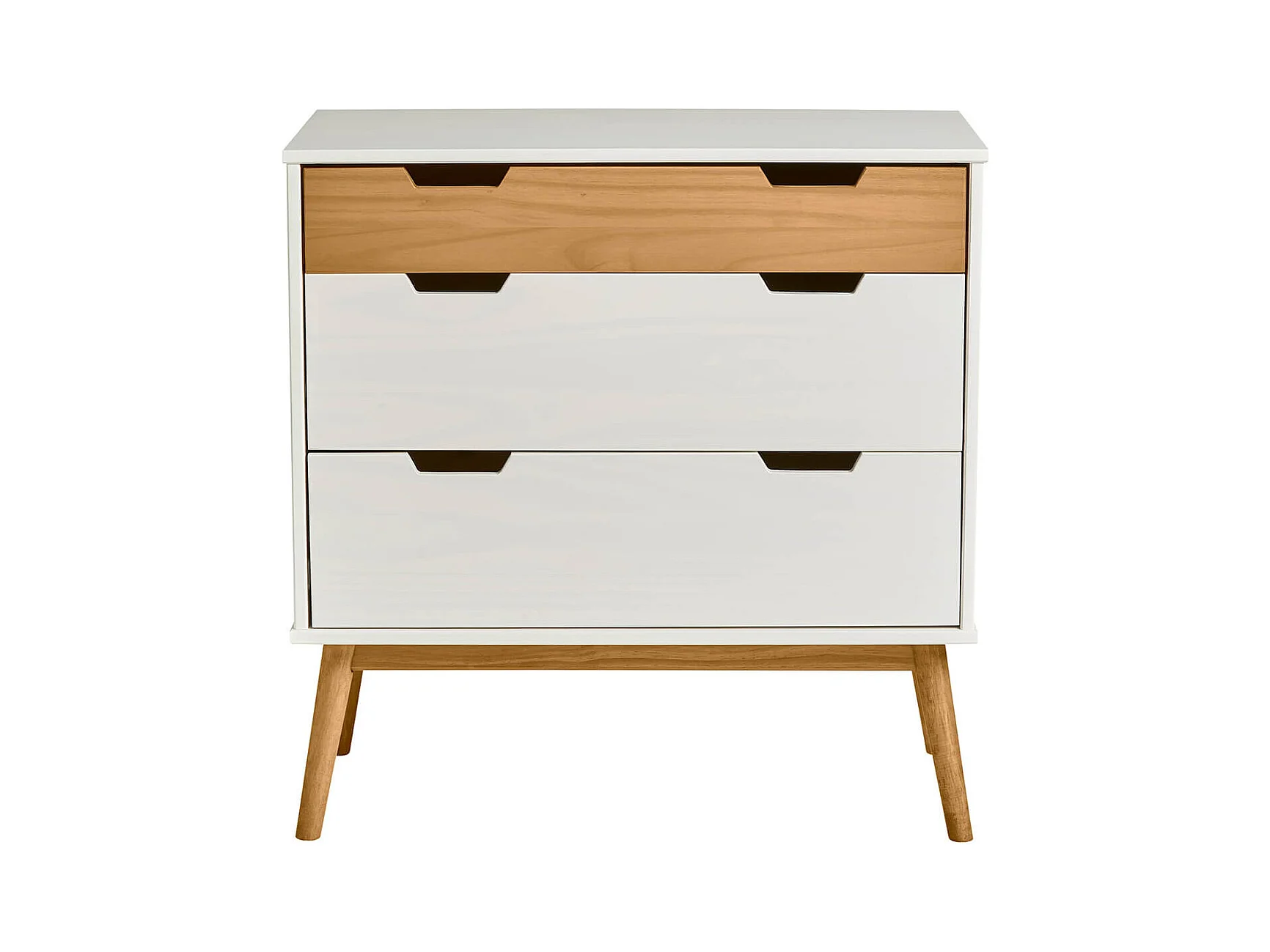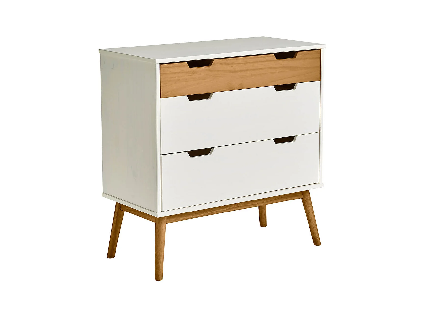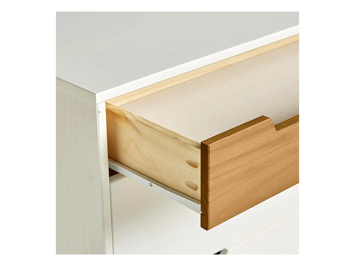 MUGAN - Commode 3 Tiroirs Blanc et Pin Naturel