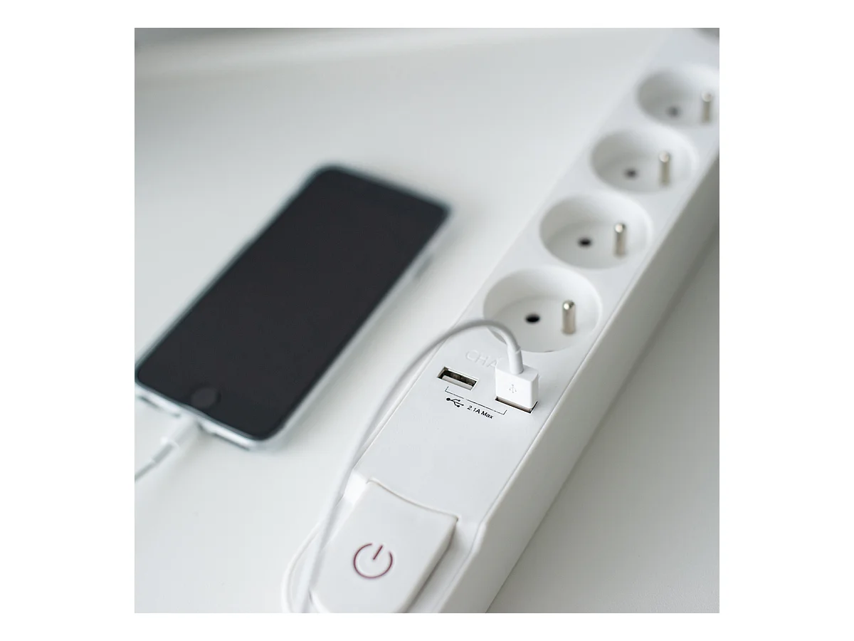 Multiprise Design 5x16A + 2xUSB 1,5m - Blanc - Chacon