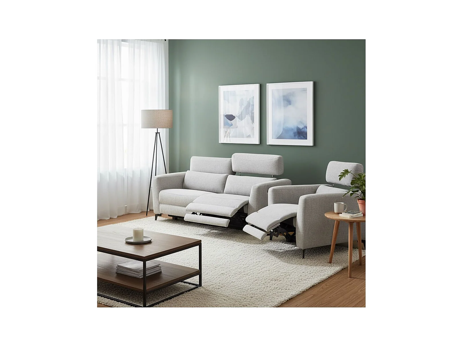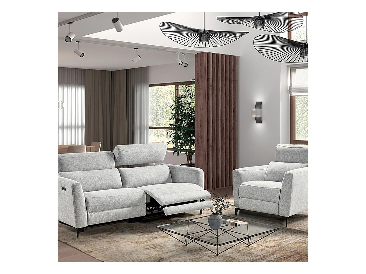 MUMBAI - Ensemble Canapé Relax 3 Places et 1 Fauteuil Electriques Gris Clair