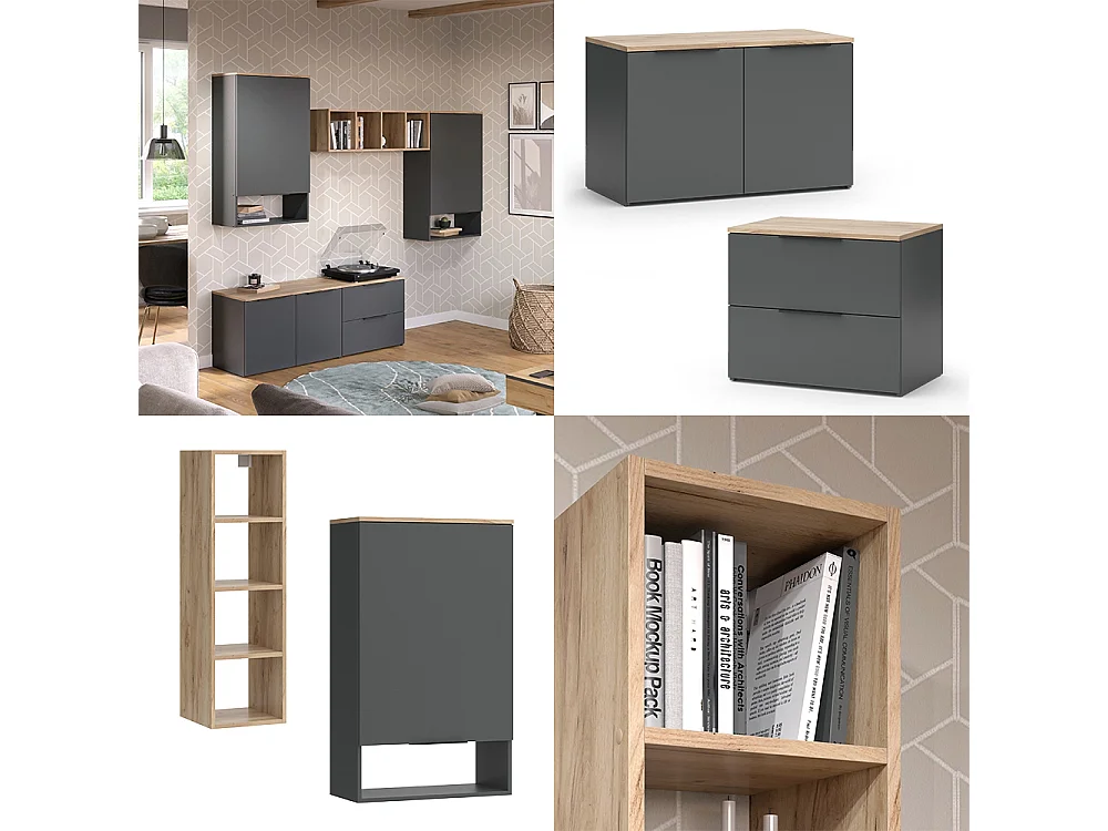 Mur de salon anthracite 80x40x50 wido