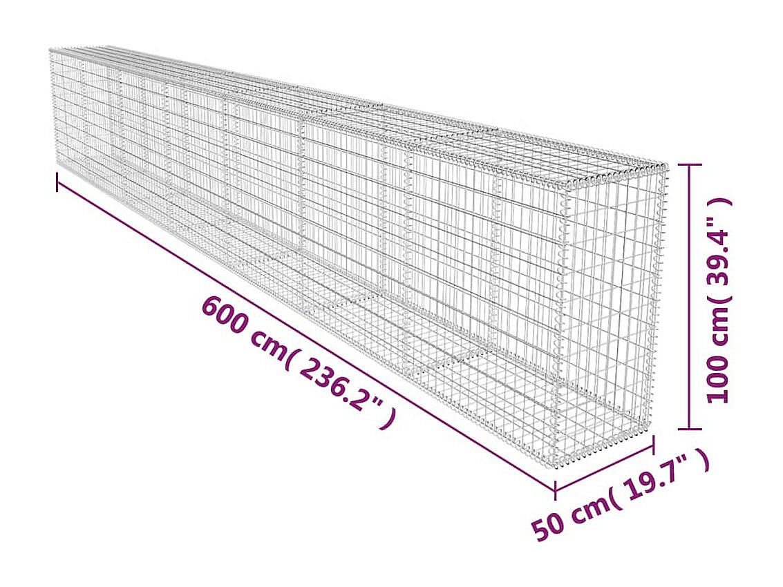 Mur en gabion-Panier de gabion avec couvercle Acier galvanisé 600x50x100 cm