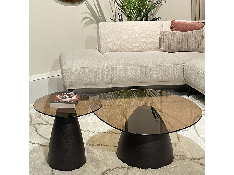 MUSH-Table basse organique D50 cm en verre fumé et métal "Rust"