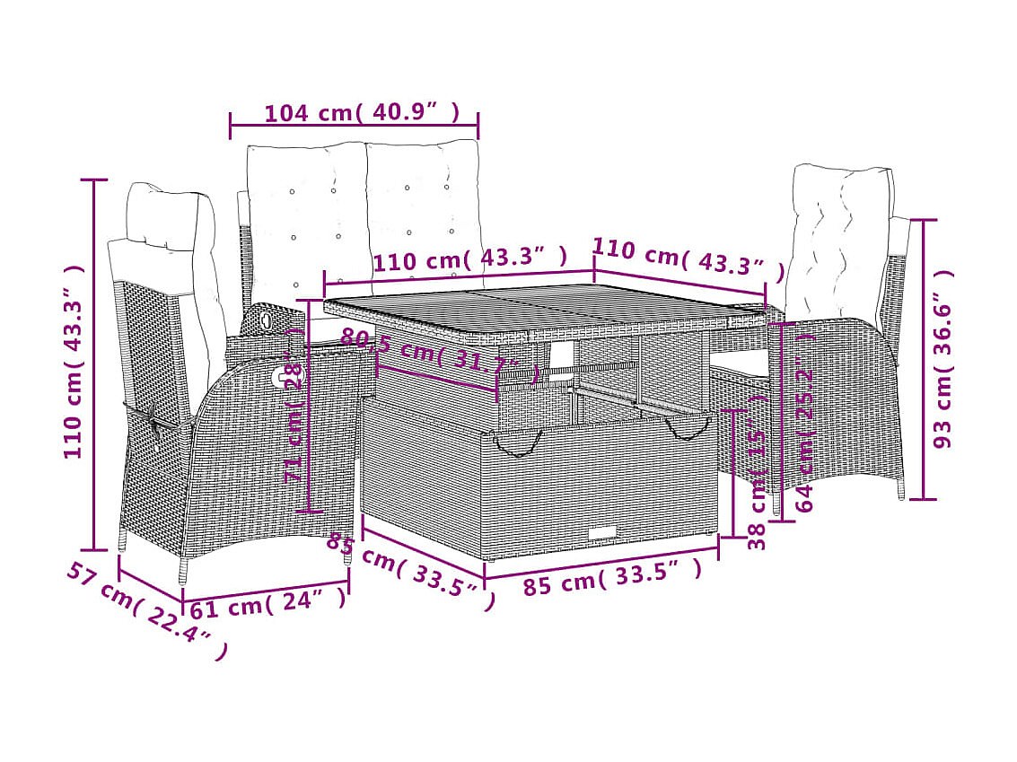 Myrvin Ensemble à manger jardin 4pcs et coussins Gris Résine tressée