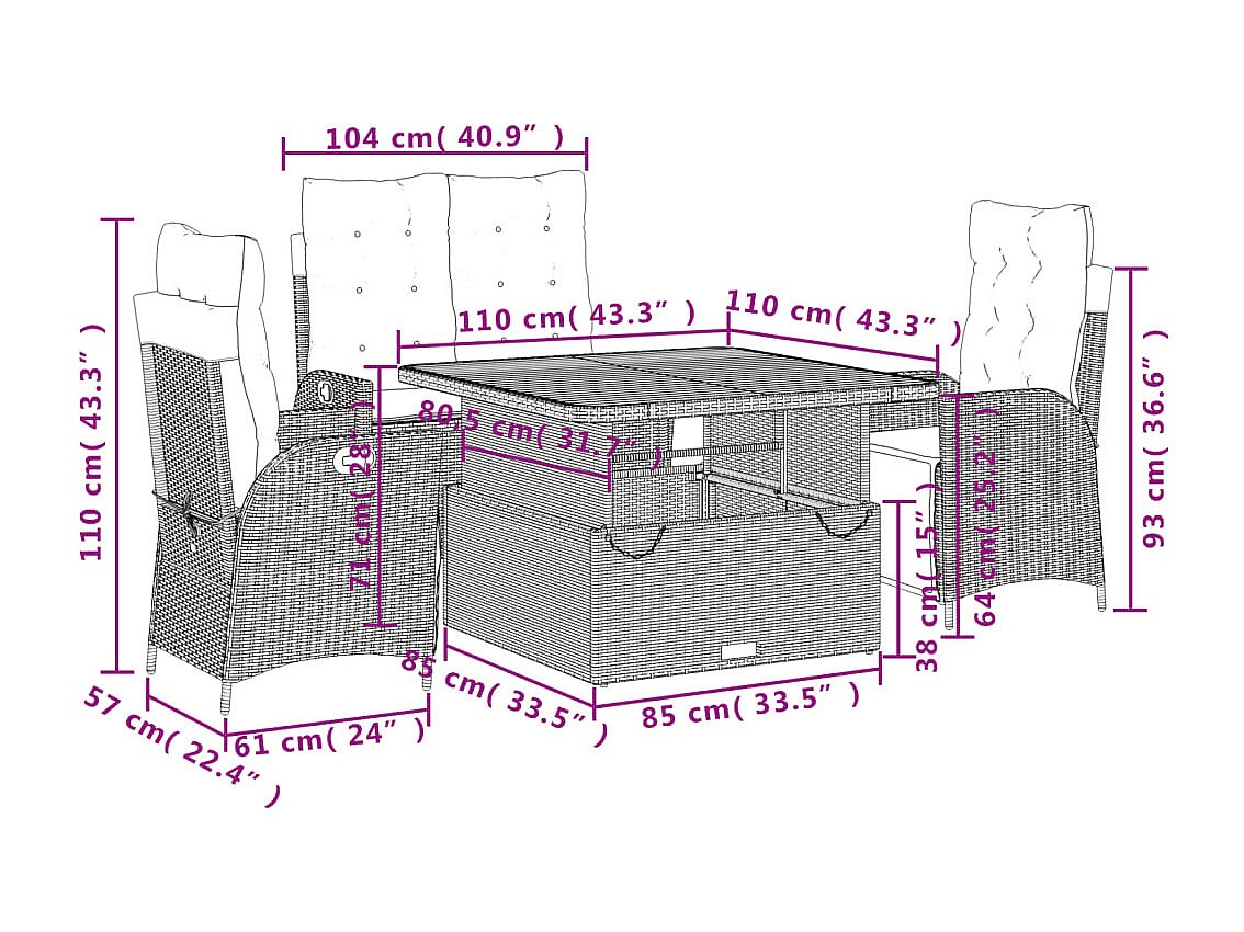 Myrvin Ensemble à manger jardin 4pcs et coussins Gris Résine tressée