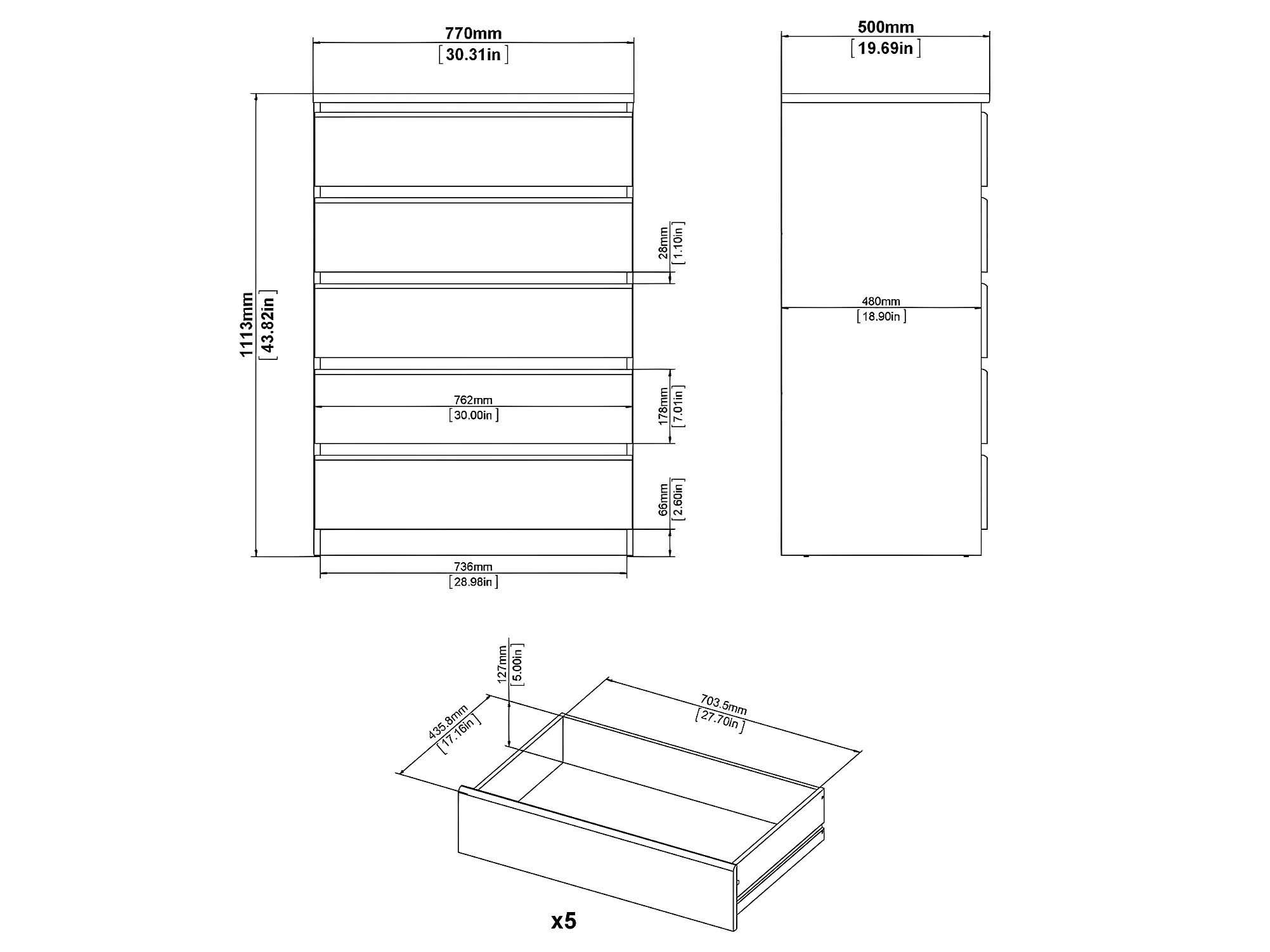 Nada Commode haute avec 5 tiroirs, noir mat.