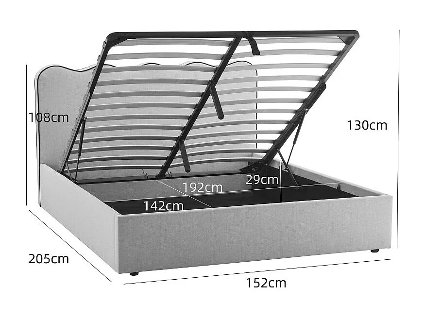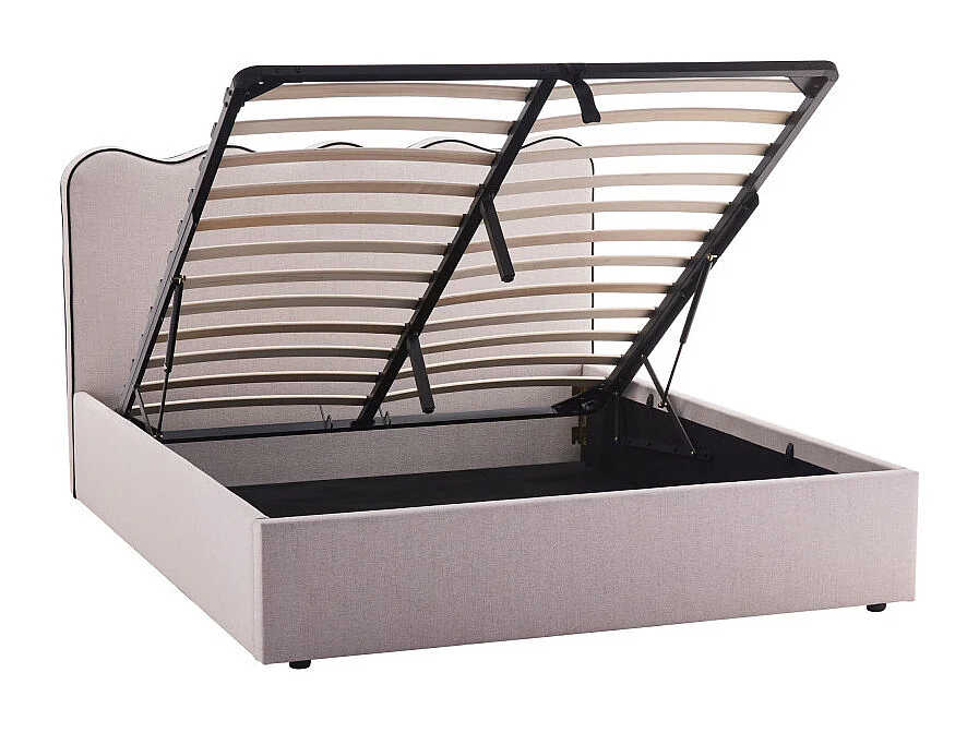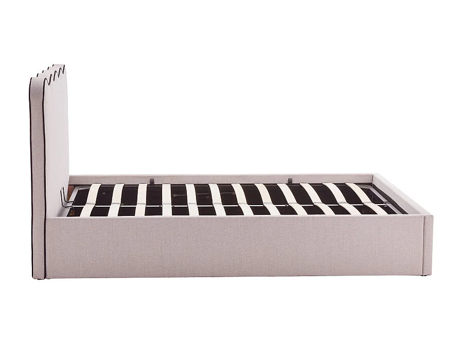 Nagoya - Lit coffre en tissu avec tête de lit ondulée 140x190cm - Beige