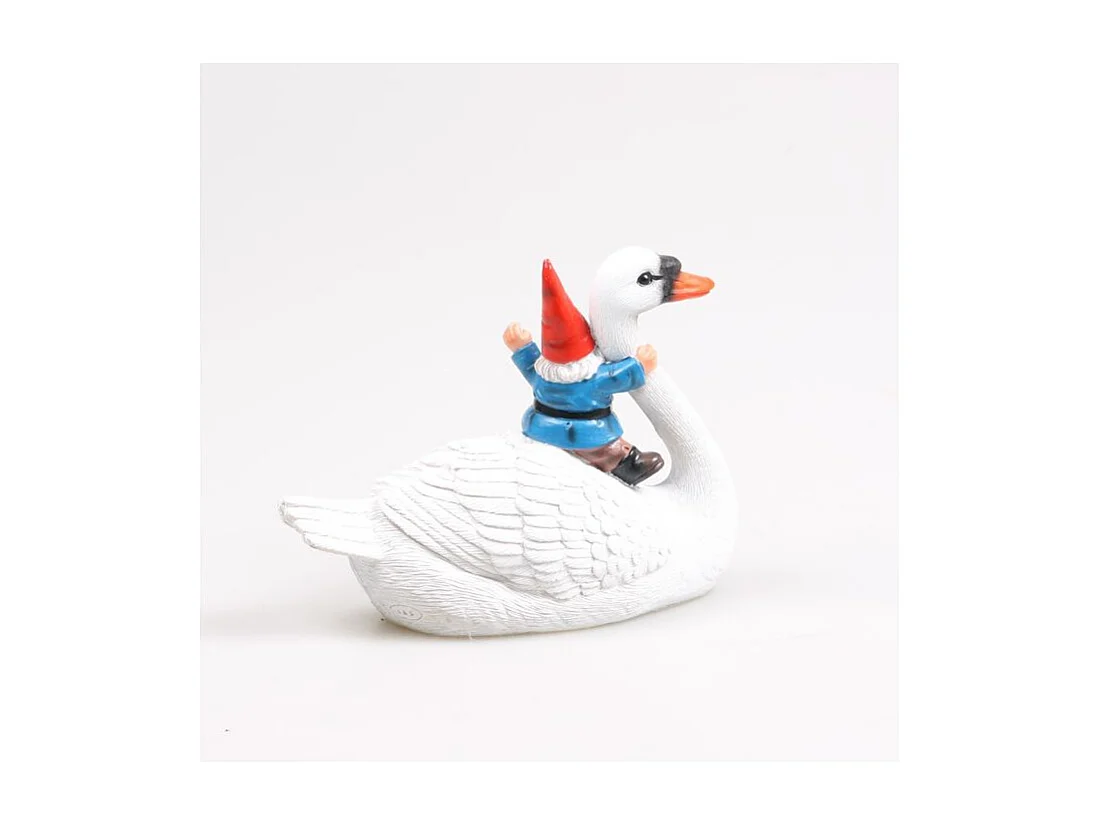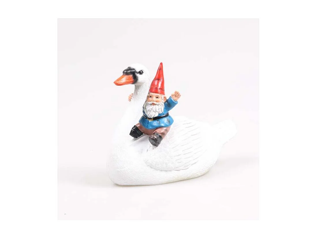 Nain de jardin en résine balade sur l'eau Cygne assis