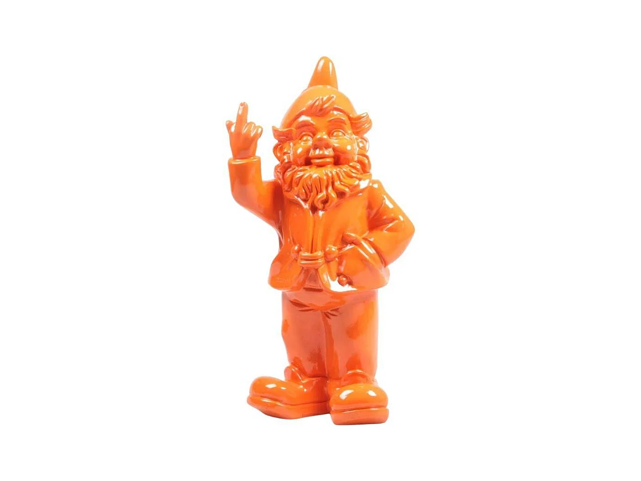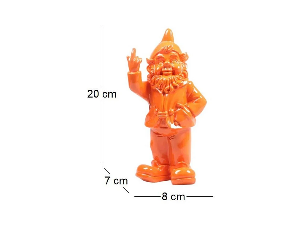 Nain de jardin en résine doigt d'honneur 7 x 8 x 20 cm Orange