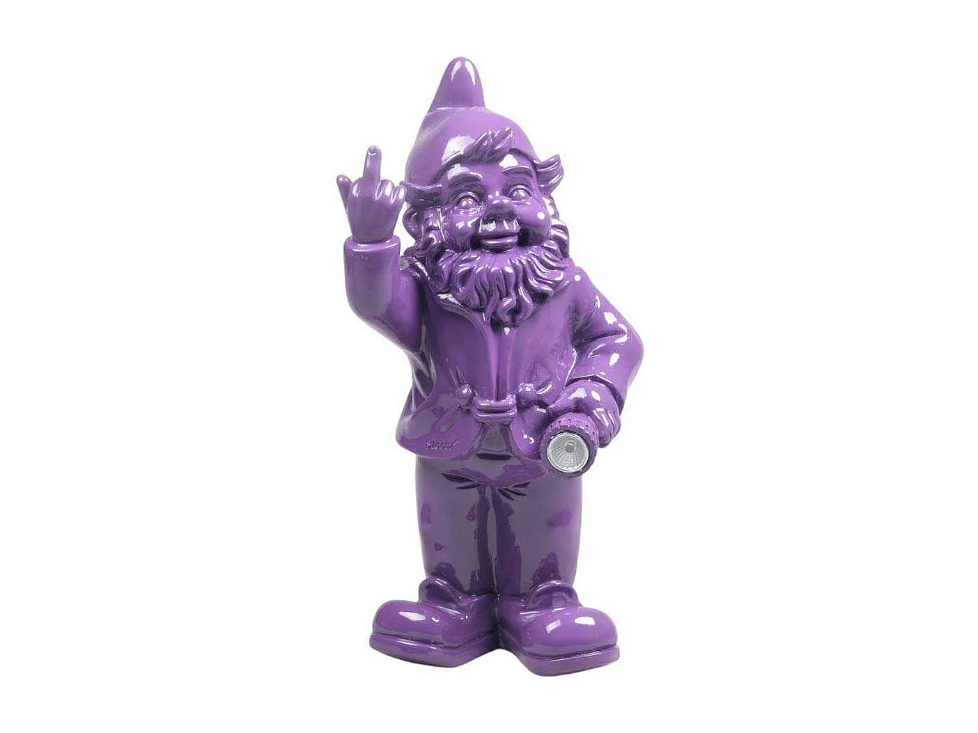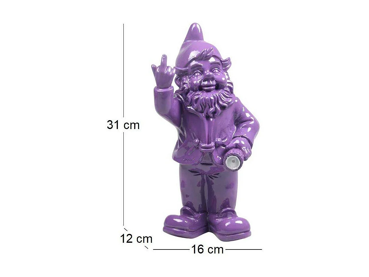 Nain de jardin en résine doigt d'honneur 7 x 8 x 20 cm Violet