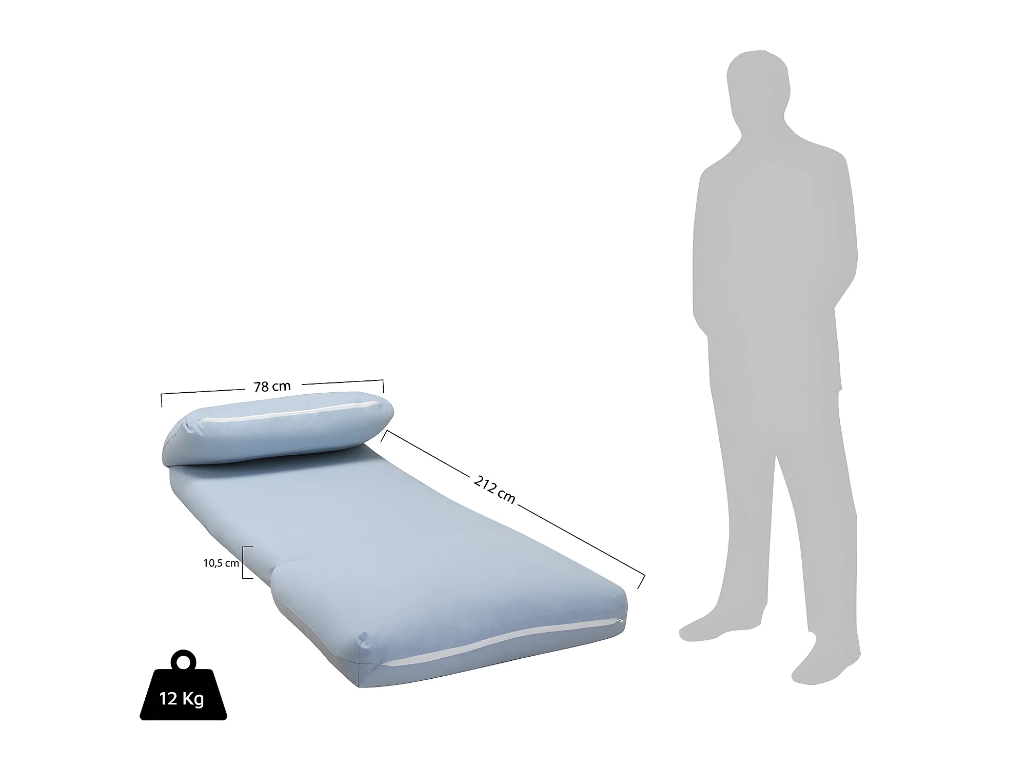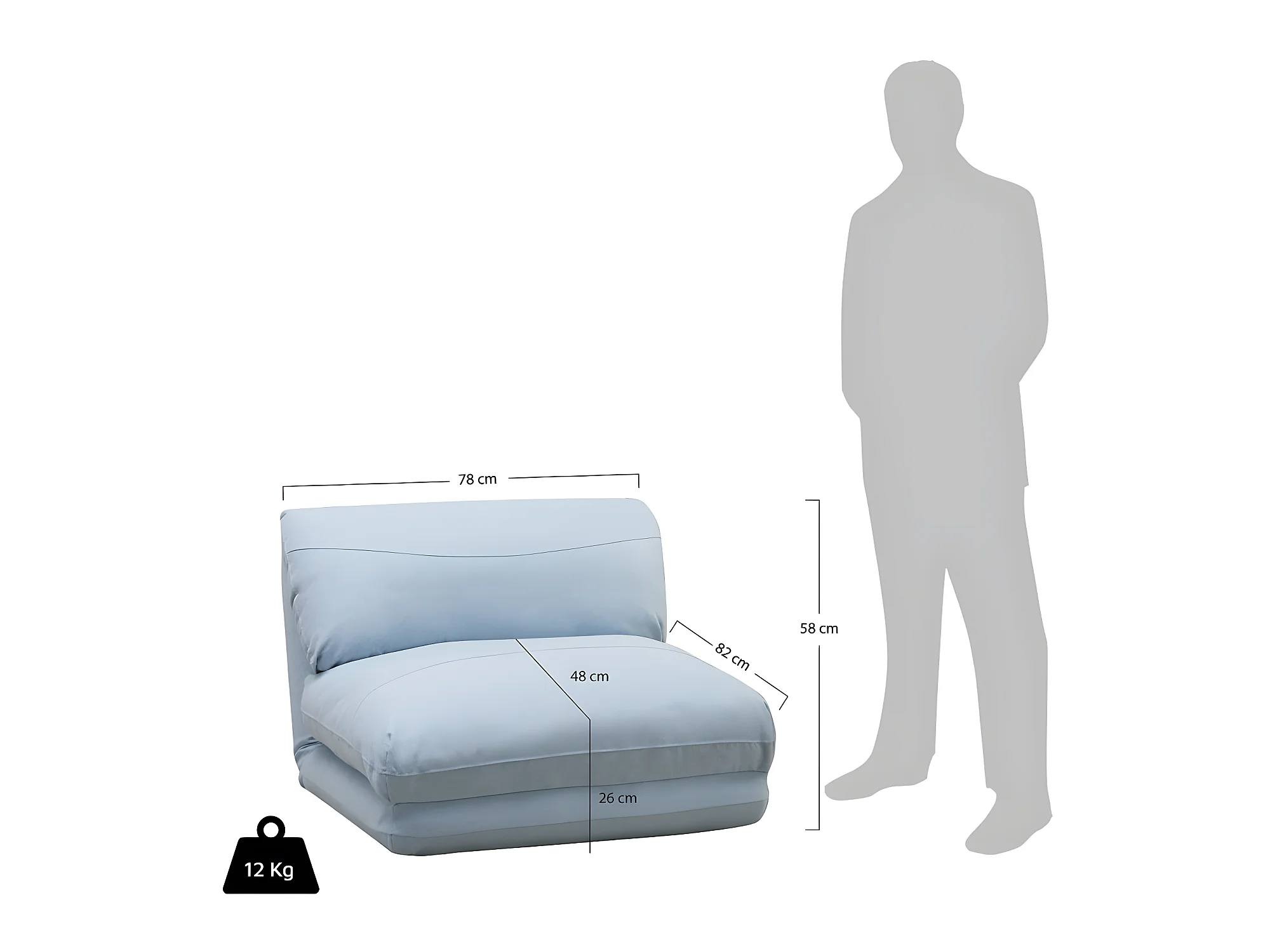 Nalo - Chauffeuse convertible 1 place en tissu : Couleur - Bleu pastel