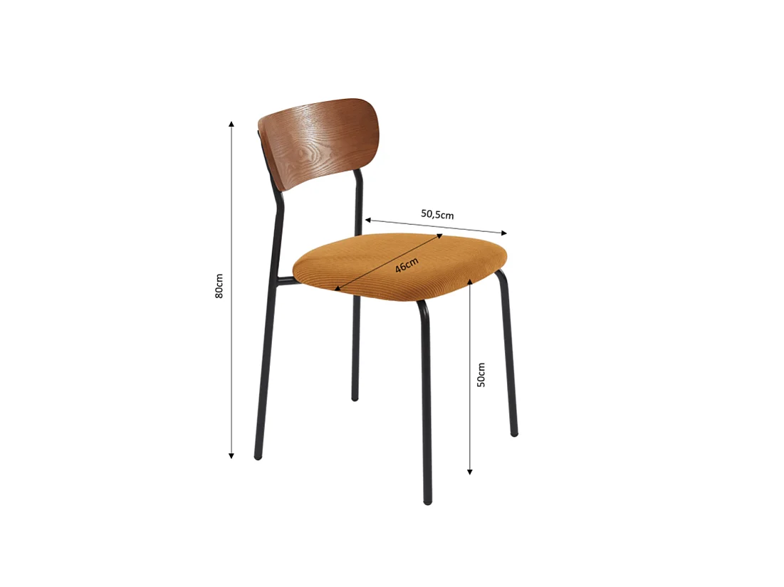 Lot de 4 chaises empilables FRIDA velours côtelé jaune moutarde et métal noir