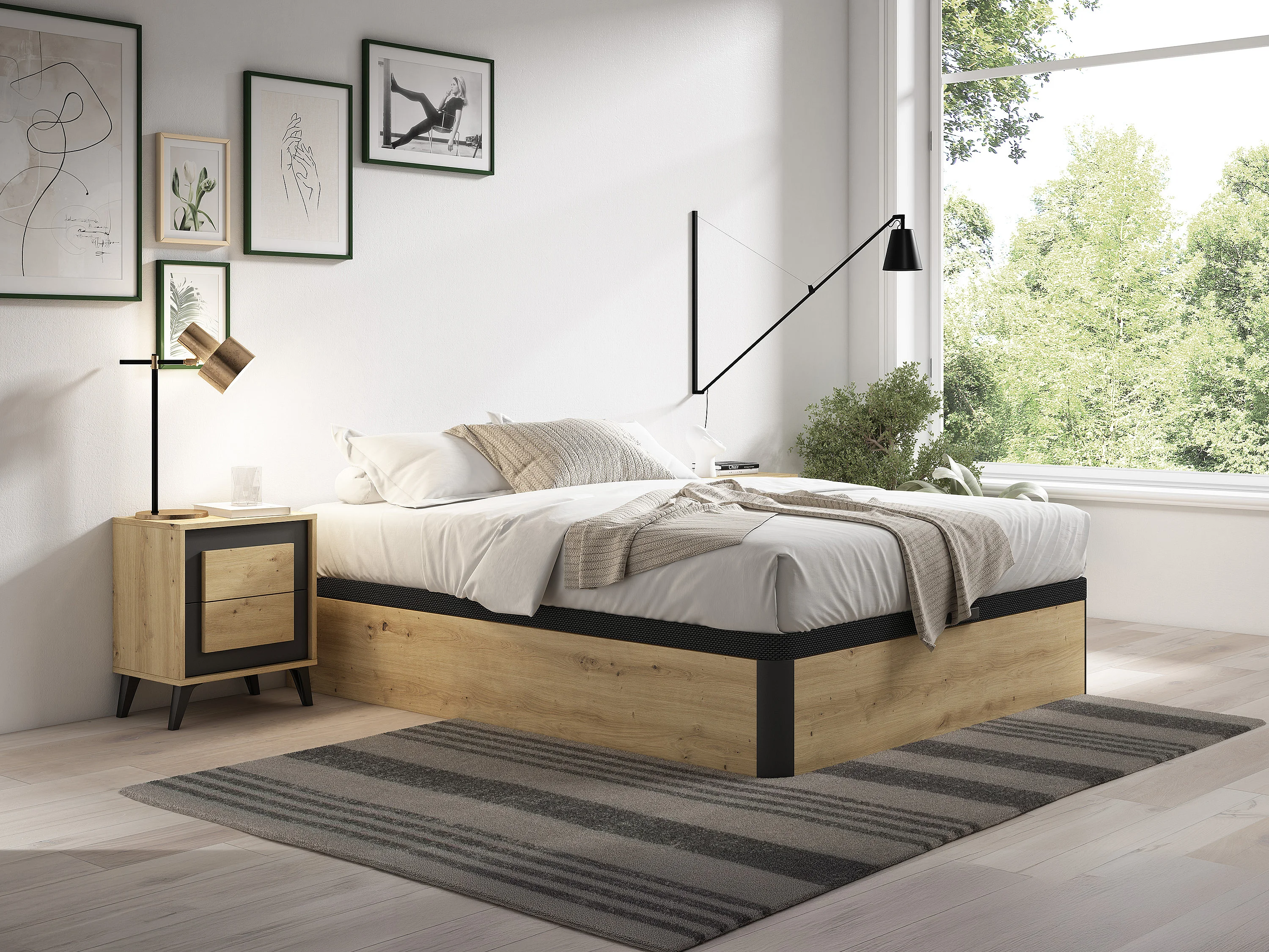 Sommier coffre 140 x 200 cm - Naturel clair et noir - NAMOSI de YSMÉE