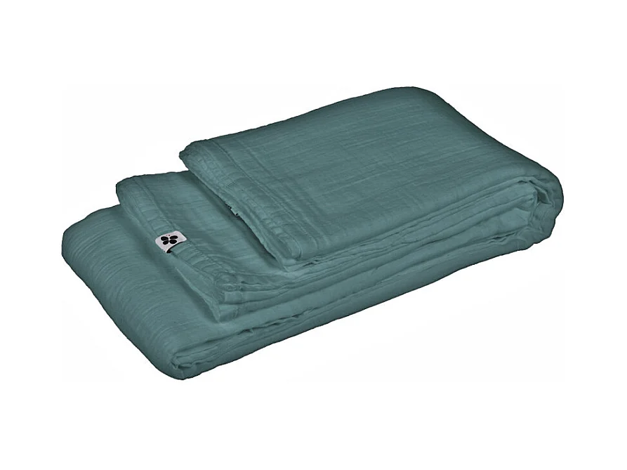 Nappe 150 x 250 cm en double gaze de coton gaufrée bleu canard - PEPA