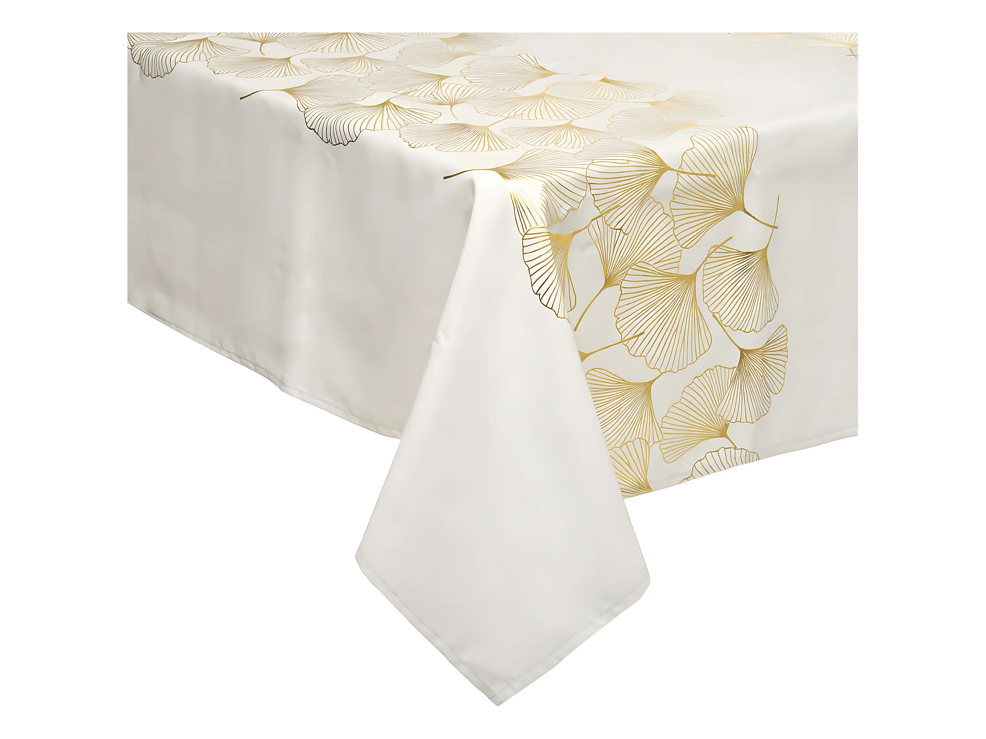 Nappe anti-taches Blanche imprimé Feuillage doré 140 x 360 cm