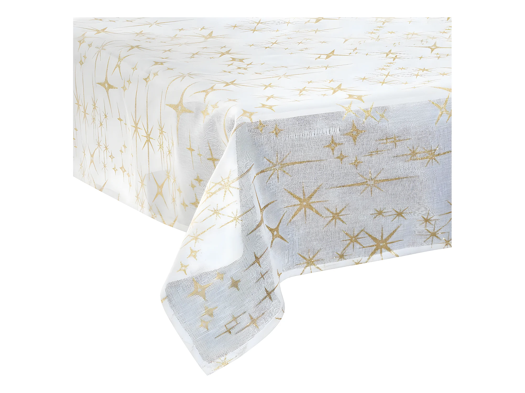 Nappe Motif Étoiles "Colorama" 140x360cm Blanc & Or