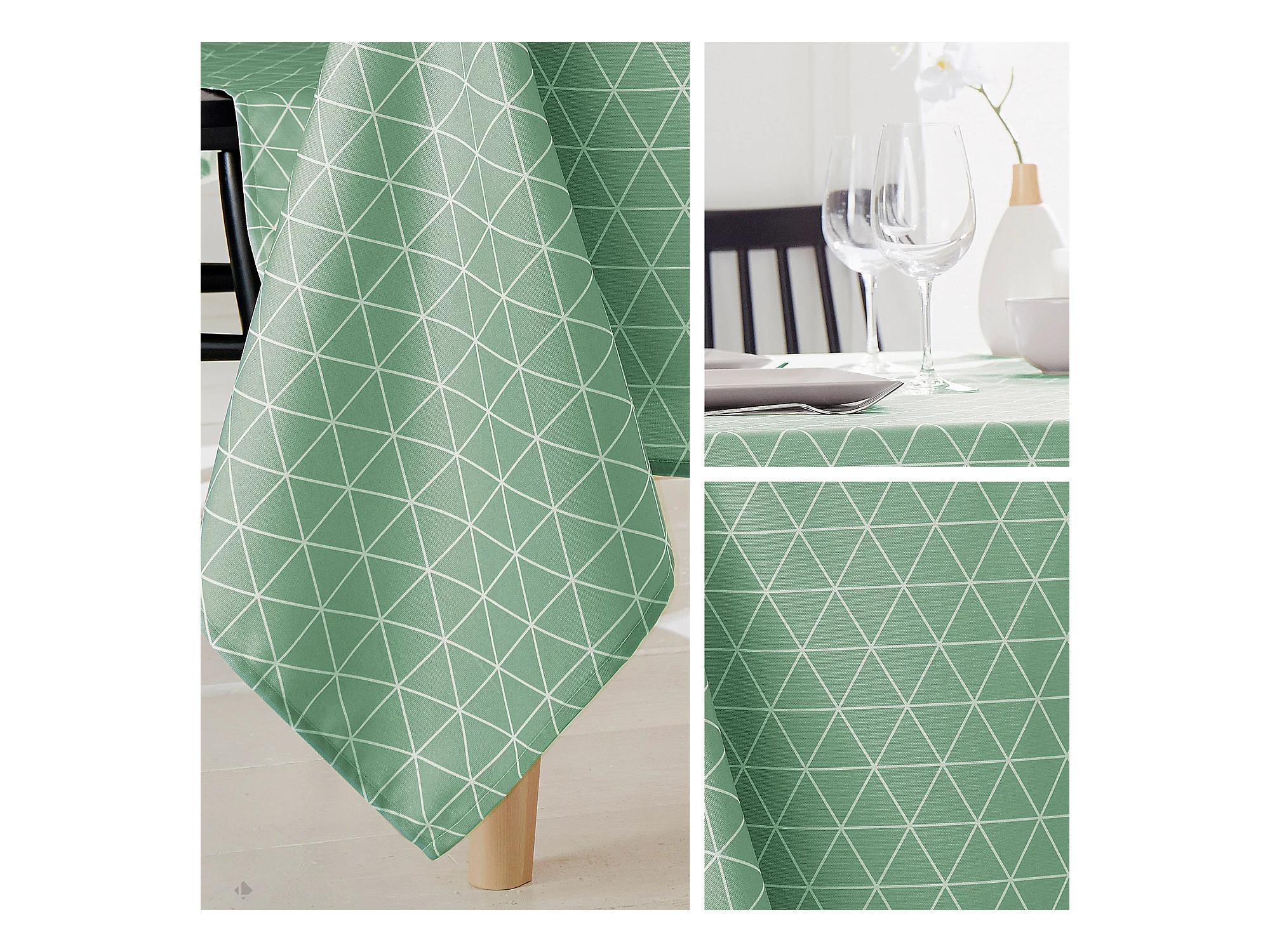 Nappe rectangle 150x350 cm imprimée 100% polyester PACO géométrique vert thym
