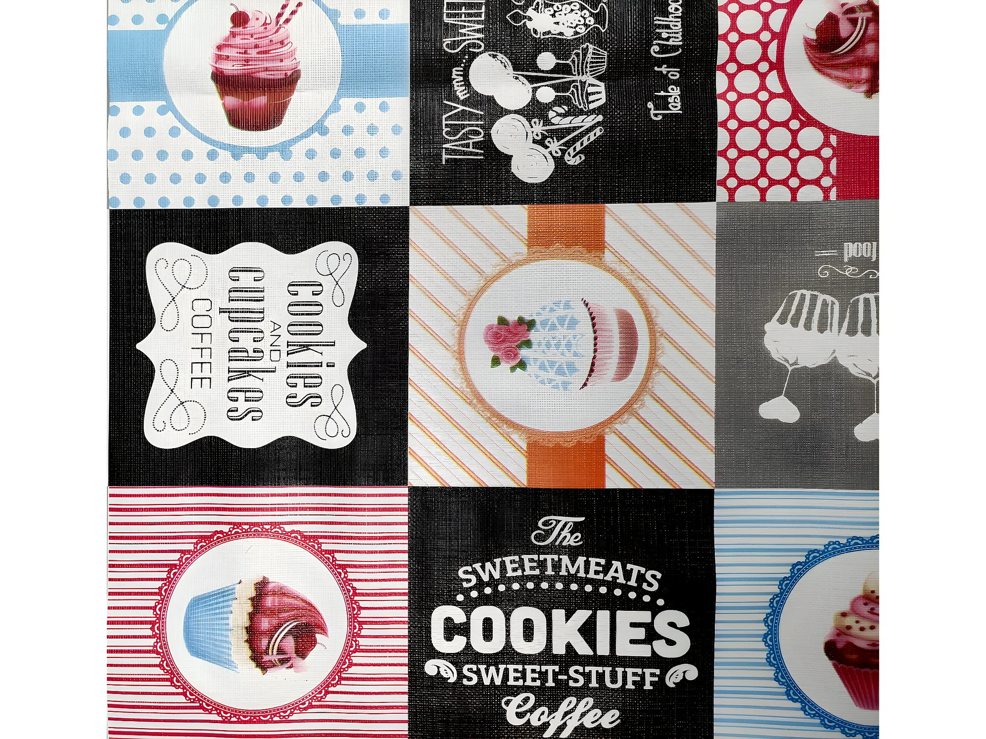 Nappe| Composition PVC| Base Polyester| Anti-taches| Muffins| Taille 140X250 CM
