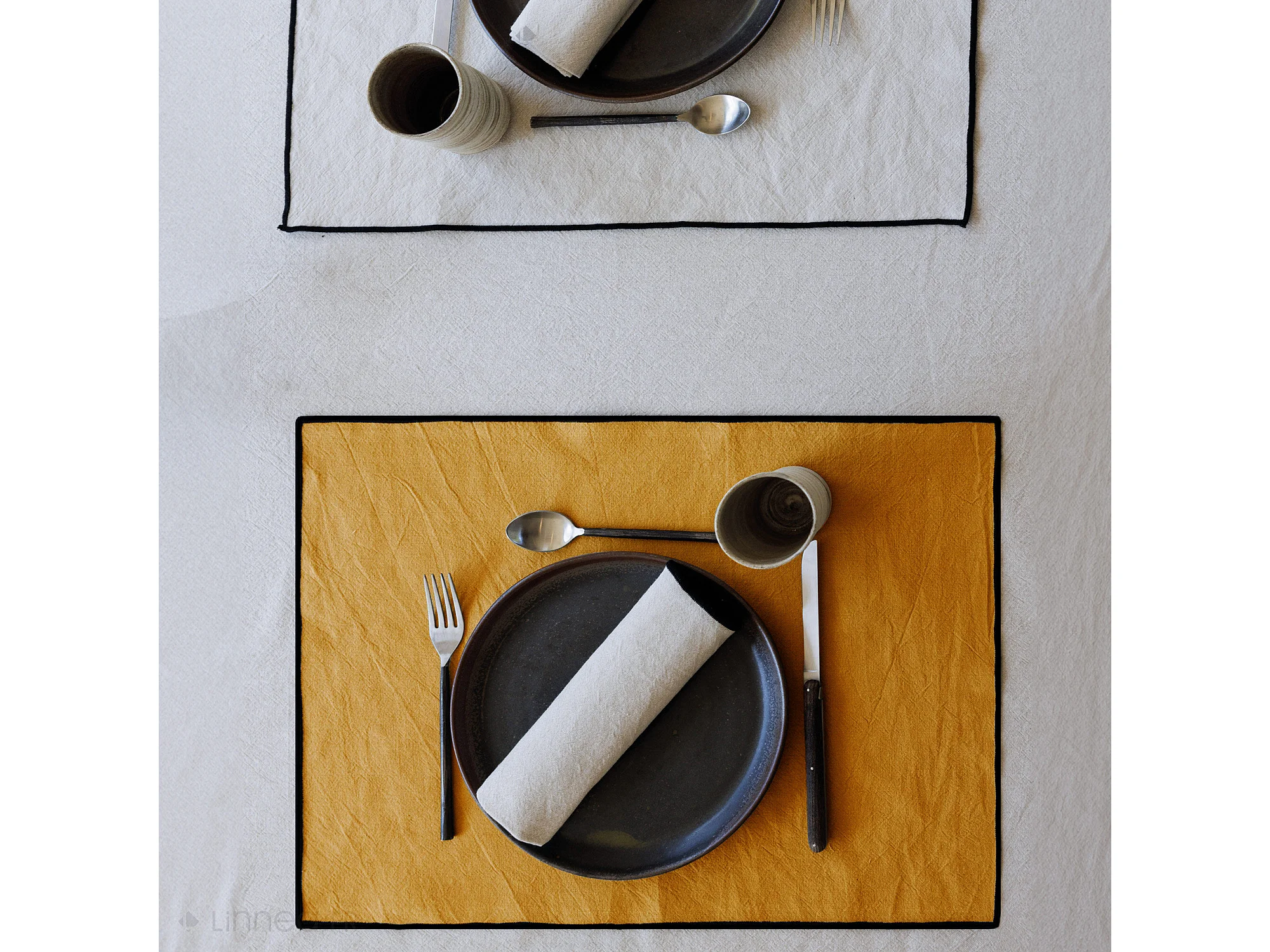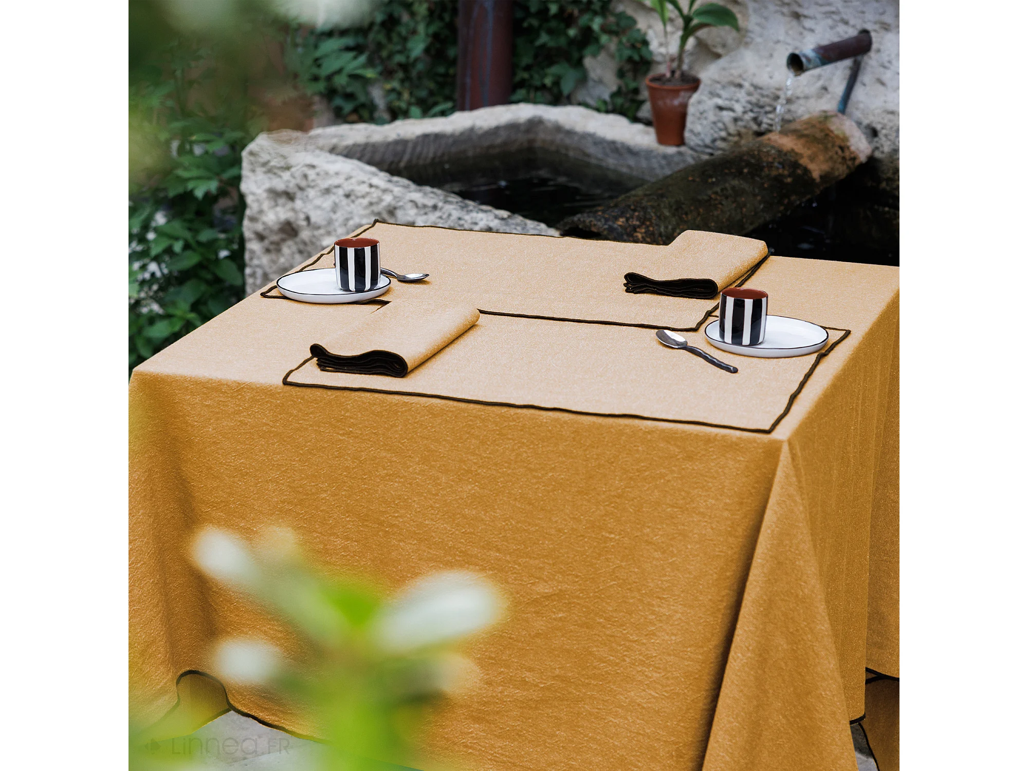 Nappe carrée coton 160x160 cm HONO jaune Curry finition point bourdon
