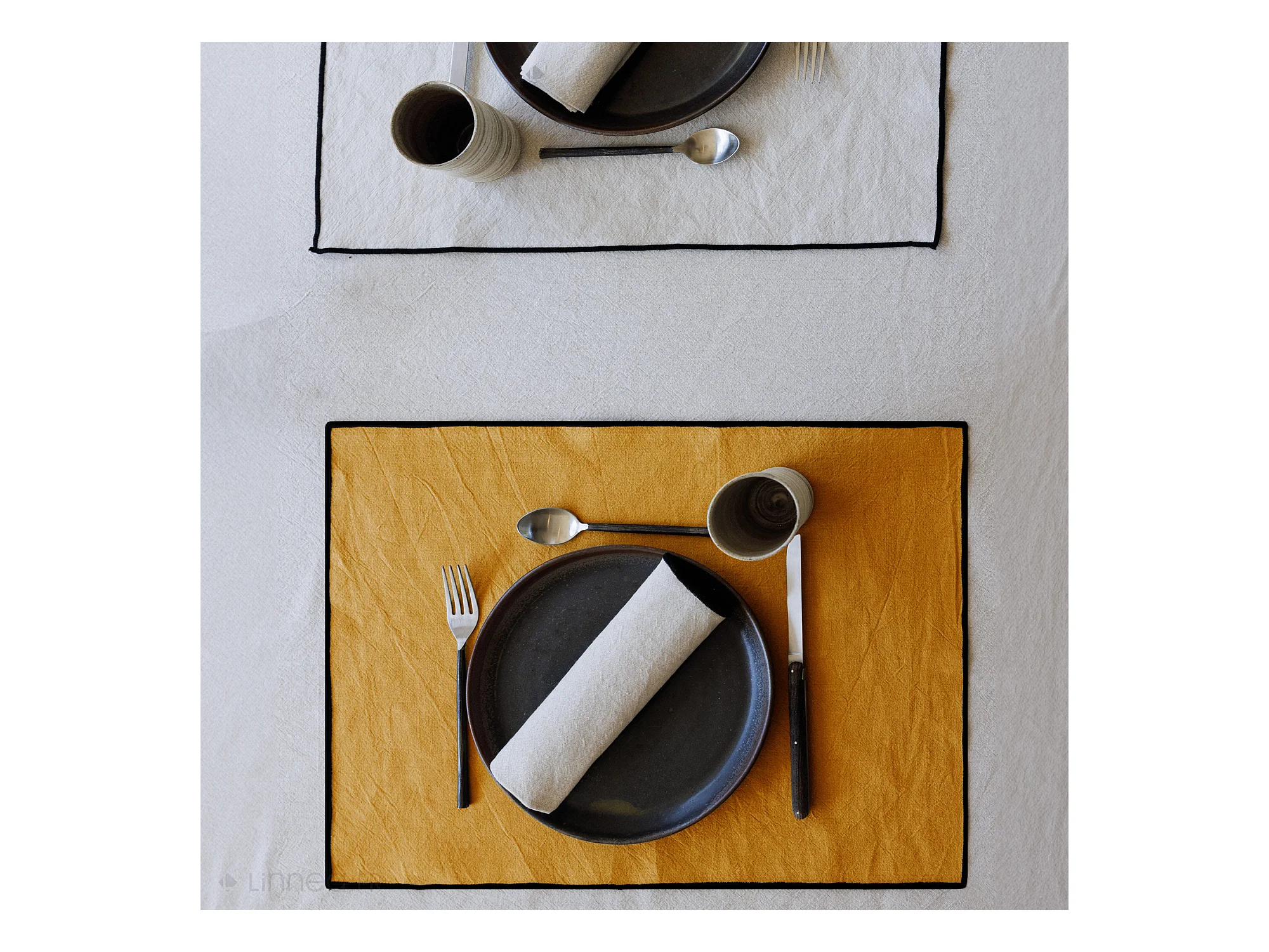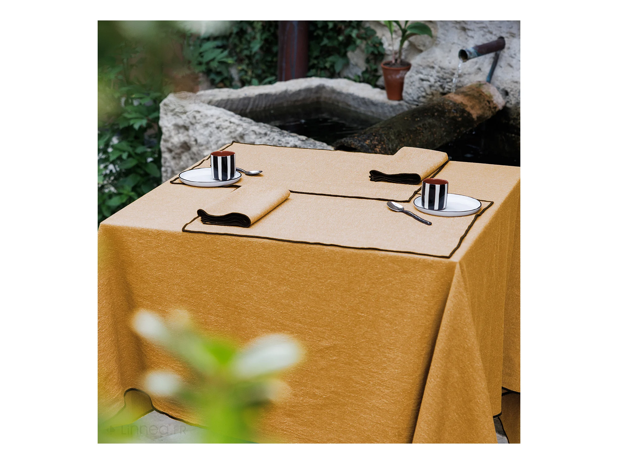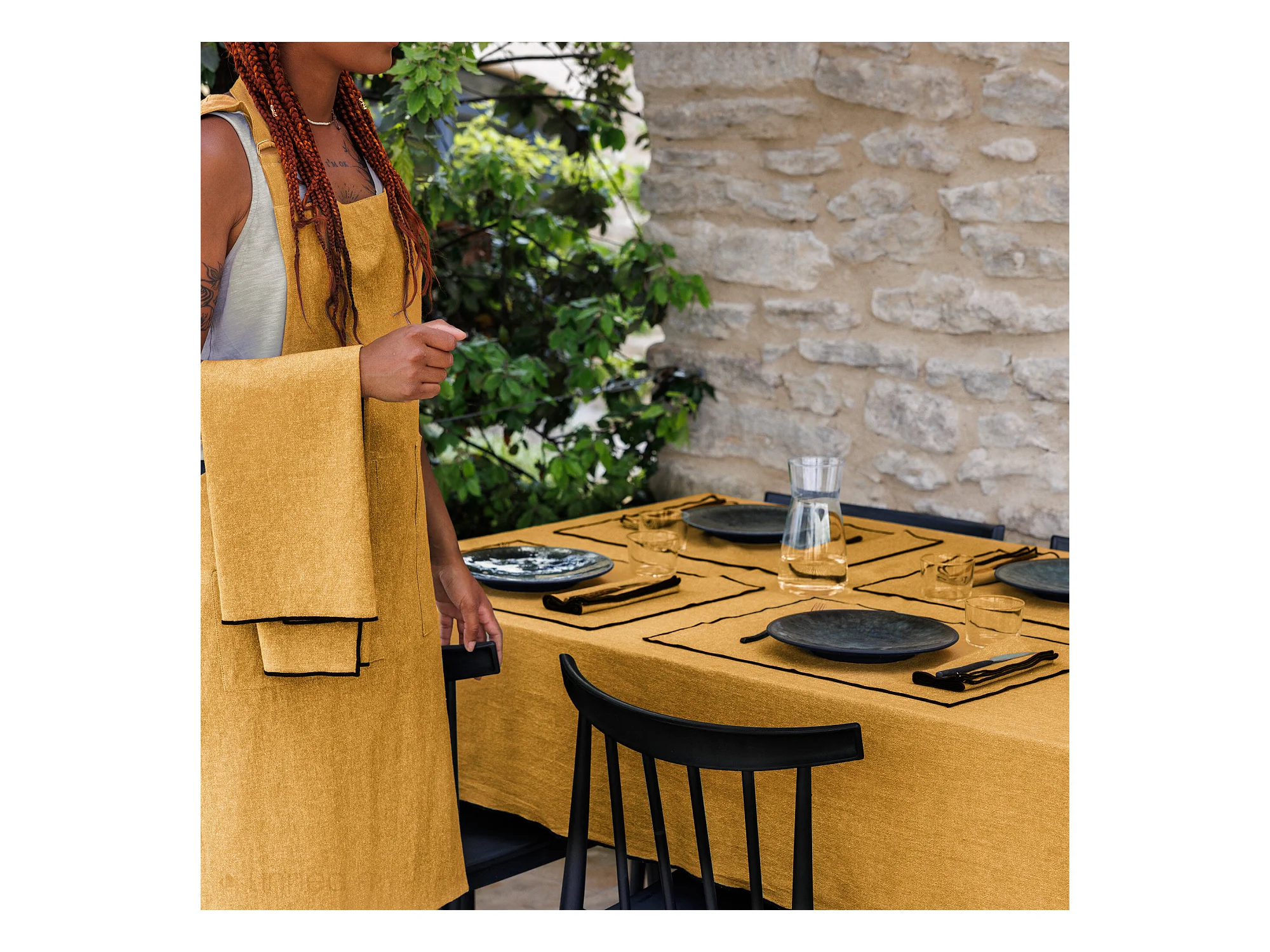 Nappe coton 160x250 cm HONO jaune Curry finition point bourdon