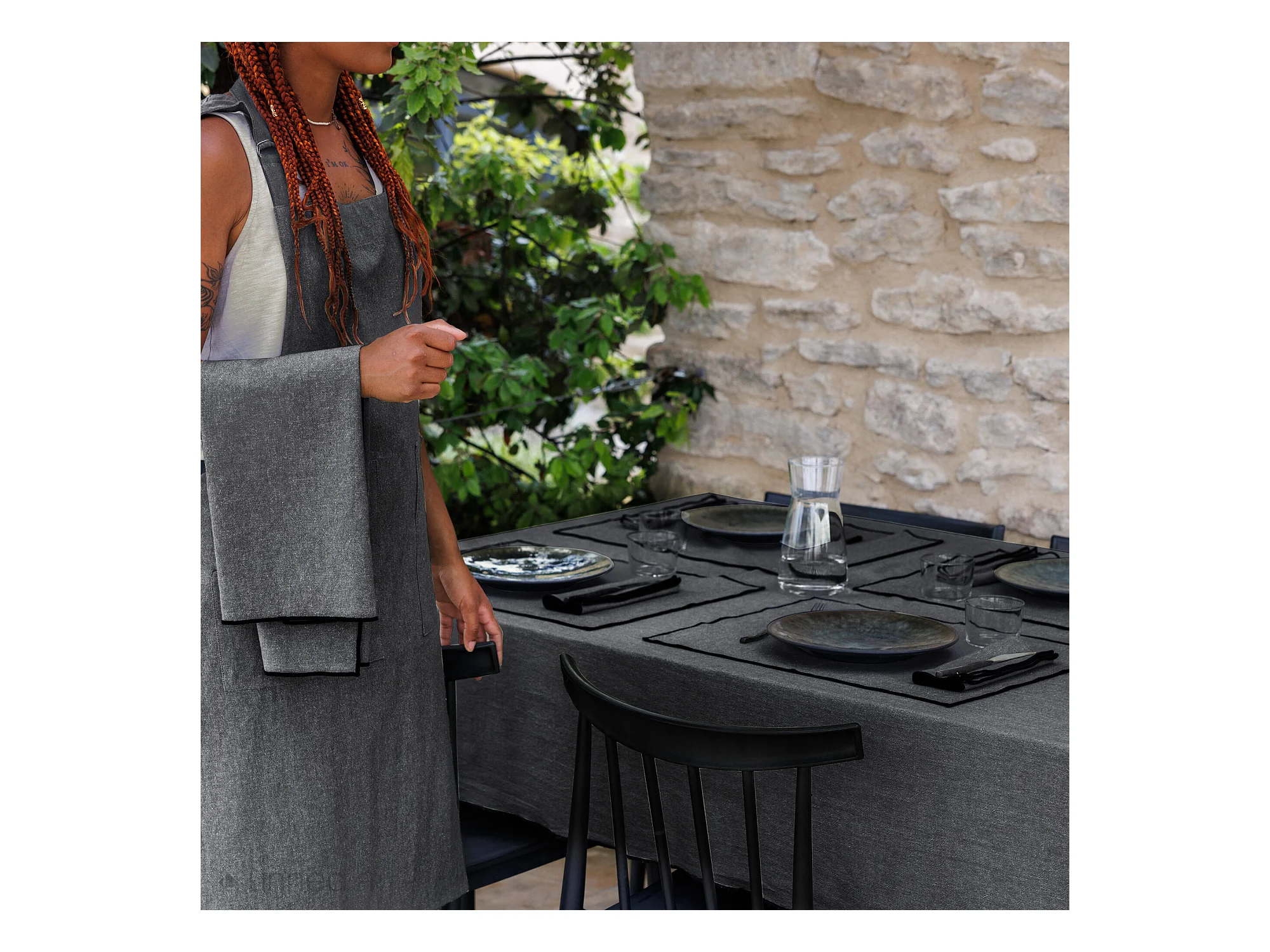 Nappe coton 160x300 cm HONO gris Anthracite finition point bourdon